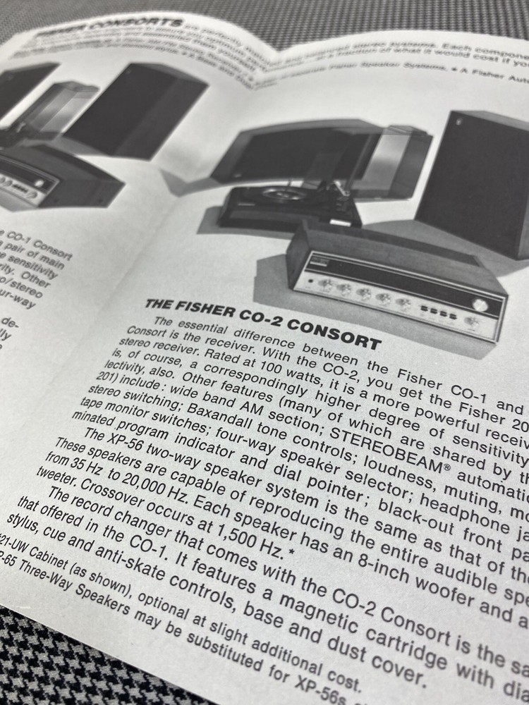 FISHER CONSORTS CO-1/CO-2 STEREO RECEIVERS ORIGINAL INFORMATION BROCHURE J0973. GOOD CONDITION PRE OWNED SOME VERY MINOR STAINING & WRITING SOME VERY MINOR ABRASIONS, TEARS, MARKING BUT DOES NOT AFFECT READABILITY PLEASE NOTE THAT WE DO NOT ACCEPT OFFERS AS ALL PRICES ARE FINAL PLEASE CONTACT US WITH ANY QUESTIONS CHECK OUT OUR PAGE BY CLICKING ON OUR USERNAME TO VIEW MORE SERVICE MANUALS THANK YOU FOR LOOKING AT THIS LISTING :)
