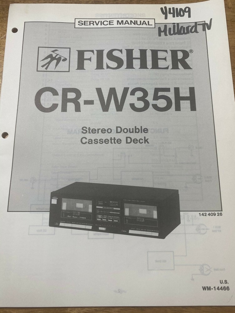 This is for an original FISHER service MANUAL, includes REPAIR INFO, part numbers and SCHEMATIC DIAGRAMS MODEL - CR-W35H STEREO DOUBLE CASSETTE DECK VERY GOOD CONDITION, Doesn't look like it was ever used. WE HAVE NO STEREO UNITS, OR AMPLIFIERS LEFT!!! THESE ARE ALL THE FISHER MANUALS WE HAVE LEFT. IF YOU DON'T SEE IT i DON'T HAVE IT. We closed out our electronic Service Shop a few years ago and are selling off the manuals we have left, some of which are manuals we acquired from other service centers that have closed.. Please check our other auctions for other closeout clearance items. I will be listing them as quick as I can but will probably take several months to list everything we have left. Item will be shipped in an envelope. Shipping is FREE in the 48 States only. $14.02 I nternational shipping. PLEASE check our other auctions. We Give free shipping in the U.S. for each additional manual purchased. Item will be shipped USPS economic shipping and may take 1-9 days. If you want faster shipping please let me know. ITEM IS SOLD "AS IS"! Thank You for the bid, and GOD BLESS THE U.S.A .