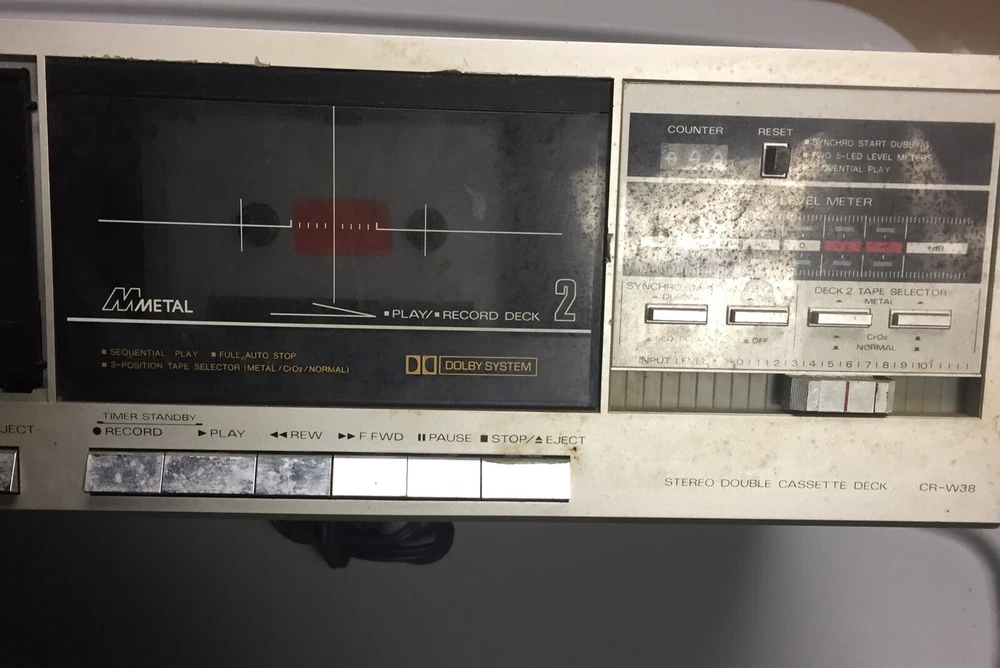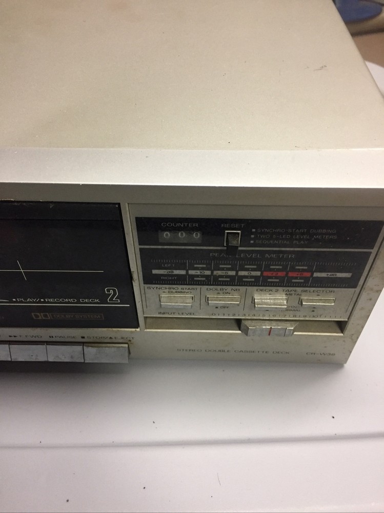 FISHER CR-W38 STEREO DOUBLE CASSETTE DUAL DECK Powers On Untested. Missing plastic cover on tape side 1 and shows signs of use all over Condition is "For parts or not working". Shipped with USPS Prior...