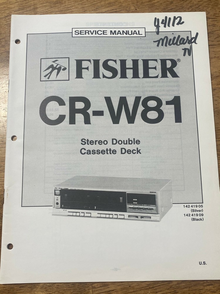 This is for an original FISHER service MANUAL, includes REPAIR INFO, part numbers and SCHEMATIC DIAGRAMS MODEL - CA-W81 STEREO DOUBLE CASSETTE DECK Manual is in VERY GOOD CONDITION, Doesn't look like it was ever used. WE HAVE NO STEREO UNITS, OR AMPLIFIERS LEFT!!! THESE ARE ALL THE FISHER MANUALS WE HAVE LEFT. IF YOU DON'T SEE IT i DON'T HAVE IT. We closed out our electronic Service Shop a few years ago and are selling off the manuals we have left, some of which are manuals we acquired from other service centers that have closed.. Please check our other auctions for other closeout clearance items. I will be listing them as quick as I can but will probably take several months to list everything we have left. Item will be shipped in an envelope. Shipping is FREE in the 48 States only. $14.02 I nternational shipping. PLEASE check our other auctions. We Give free shipping in the U.S. for each additional manual purchased. Item will be shipped USPS economic shipping and may take 1-9 days. If you want faster shipping please let me know. ITEM IS SOLD "AS IS"! Thank You for the bid, and GOD BLESS THE U.S.A .