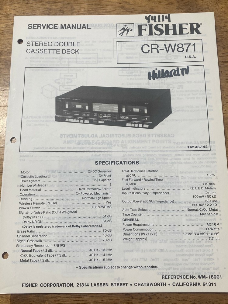 This Fisher CR-W871 service manual is a must-have for anyone restoring or repairing this classic stereo cassette deck. Packed with detailed schematics, part numbers, and repair instructions, it’s like having a technician’s guide at your fingertips. The manual is in excellent condition—barely used—and since these are the last ones available, it’s a rare find for collectors and repair enthusiasts. Perfect for keeping your vintage Fisher gear running smoothly!
