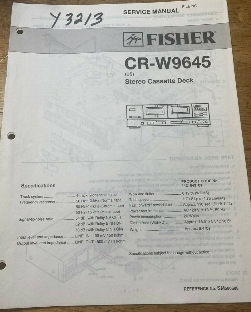 Absolutely essential for anyone restoring or repairing a Fisher CR-W9645 cassette deck! Packed with detailed schematics, part numbers, and step-by-step repair info—this manual is in pristine condition, like it was barely touched. A rare find now that these service shops are gone. Grab it while you can if you need authentic Fisher documentation!
