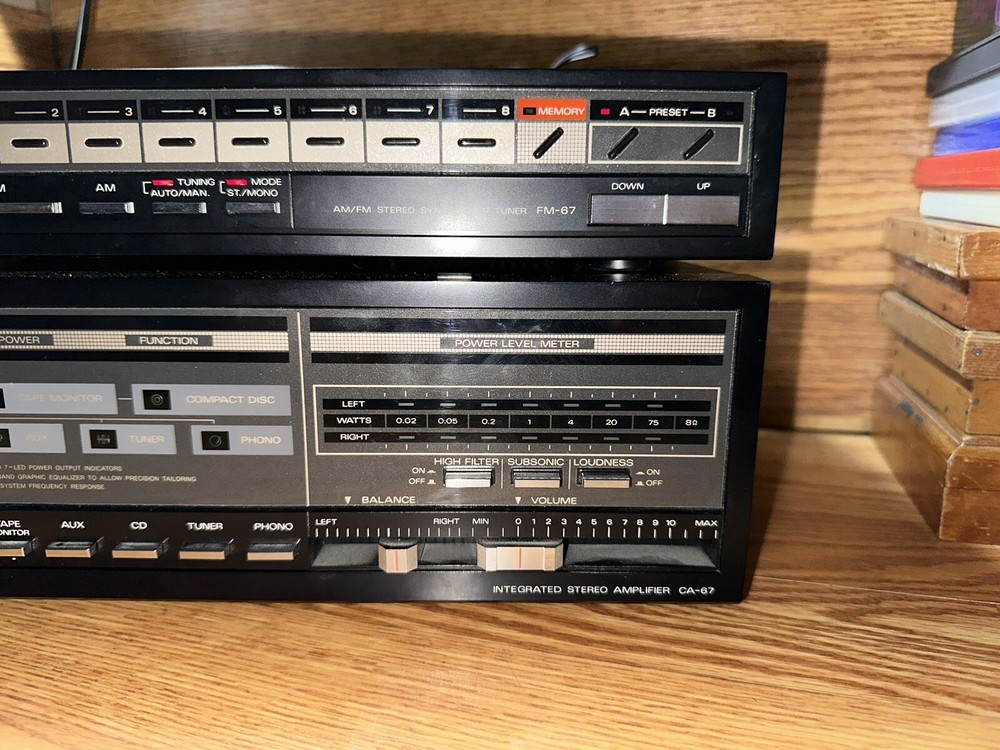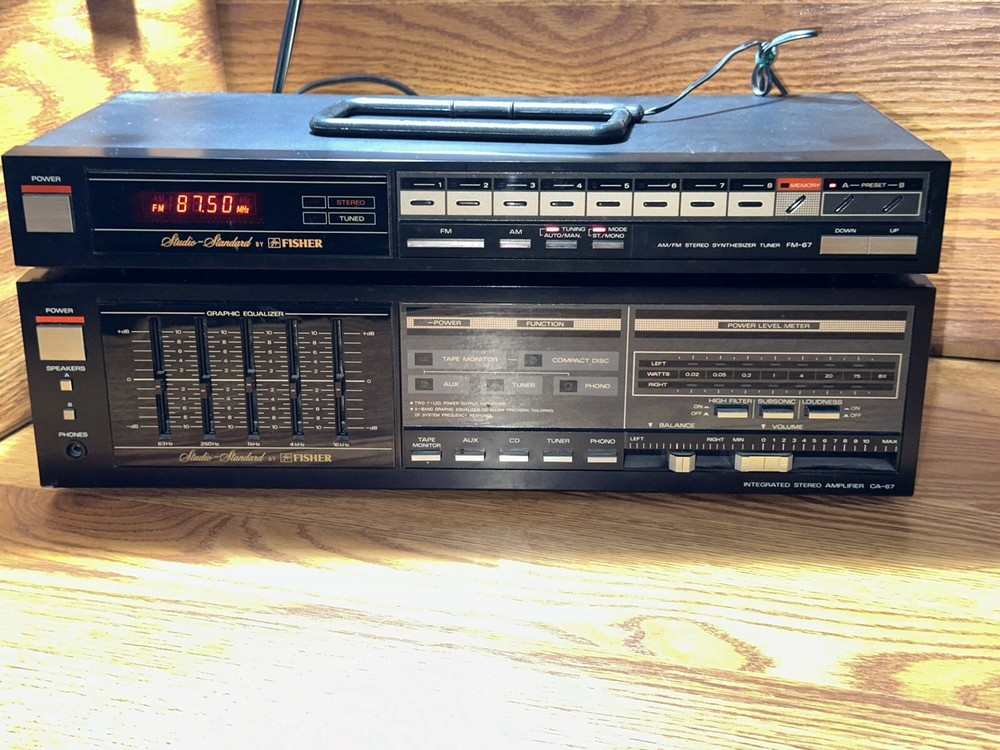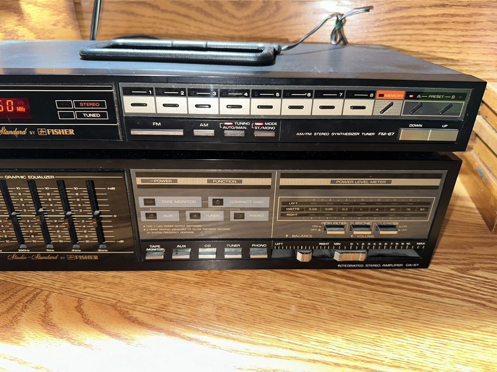 FISHER FM 67 & CA 67 AM/FM STEREO SYNTHESIZER TUNER AND INTEGRATED STEREO AMP Tested Used in great condition.. comes with antenna