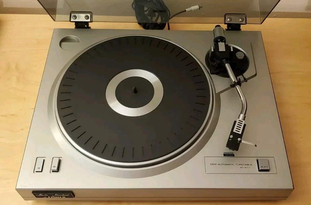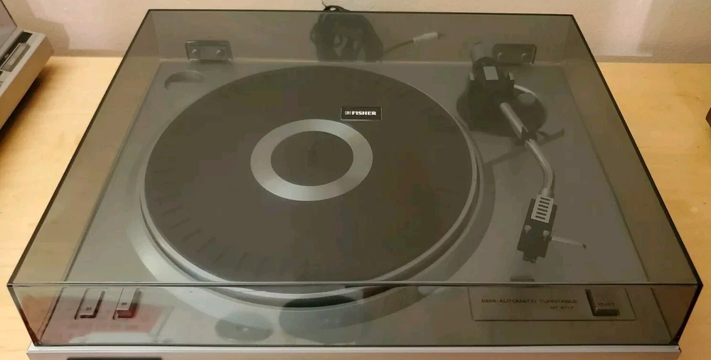 This vintage Fisher MT-6117 stereo turntable is a true gem for any audiophile. Made in Japan, it boasts a high-quality build and exquisite sound that will transport you back in time. With its classic design and sturdy construction, this turntable is perfect for any vintage audio setup. Turntable has been tested, and it is working great. Whether you're a collector or just looking for a unique music experience, the Fisher MT-6117 is a must-have.