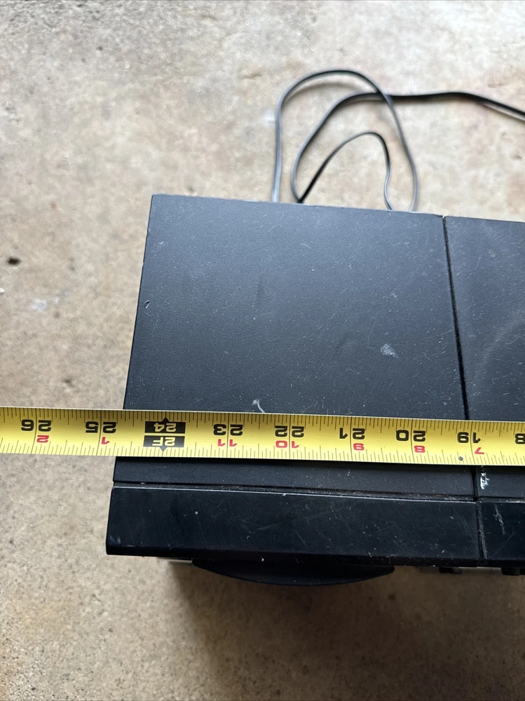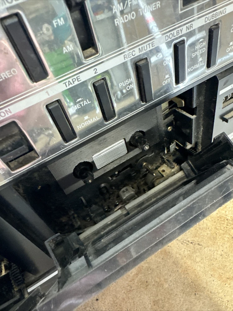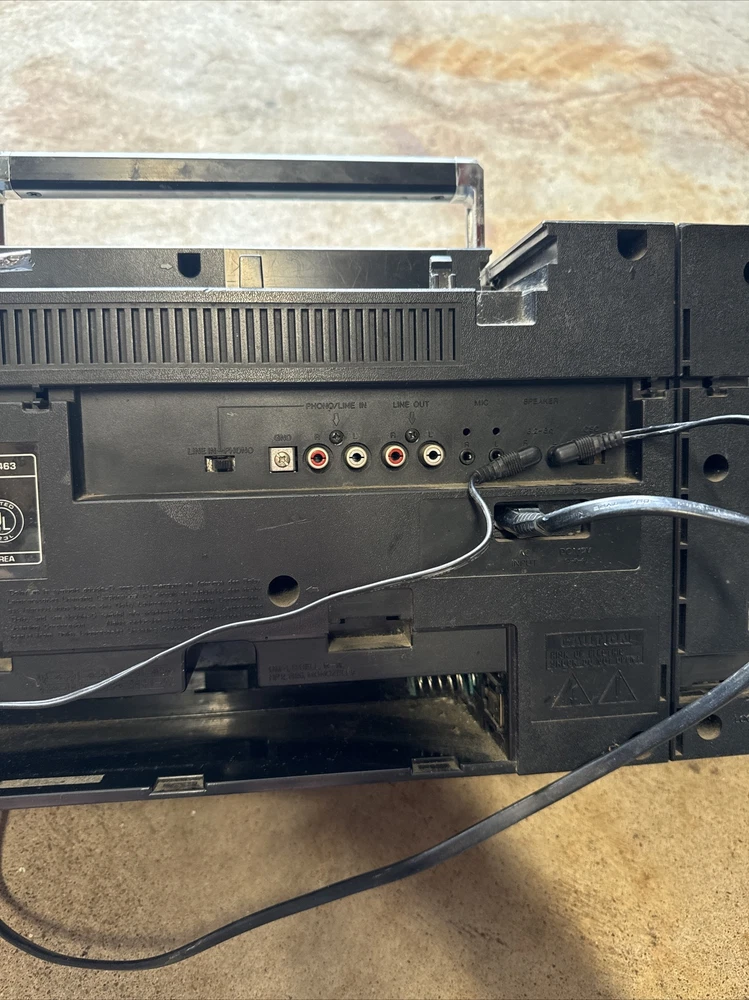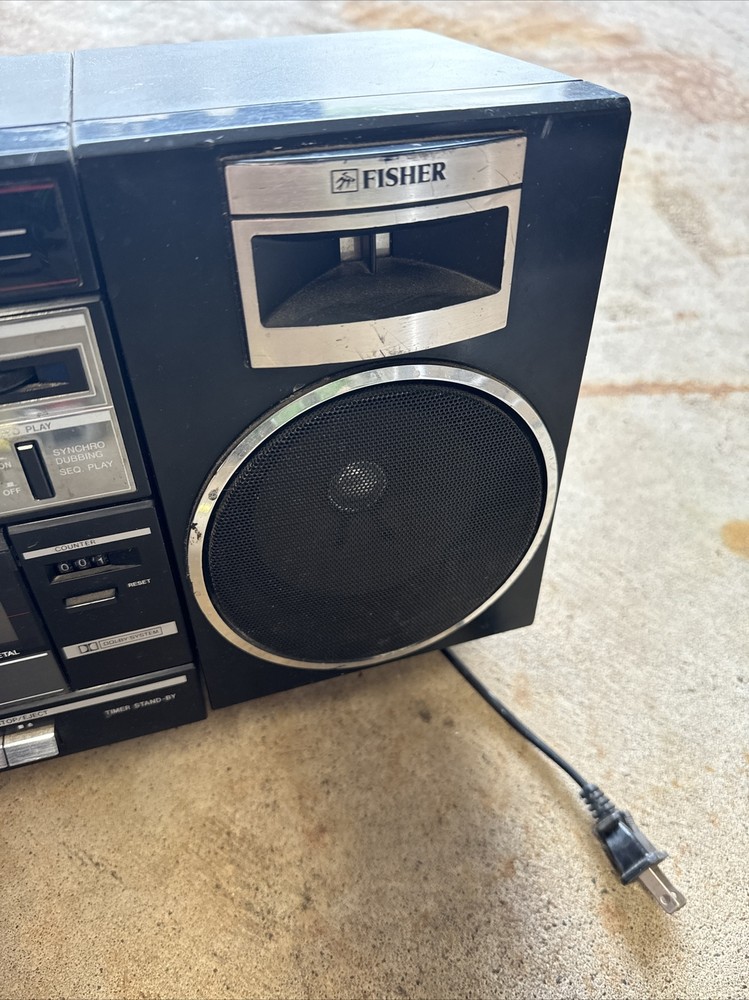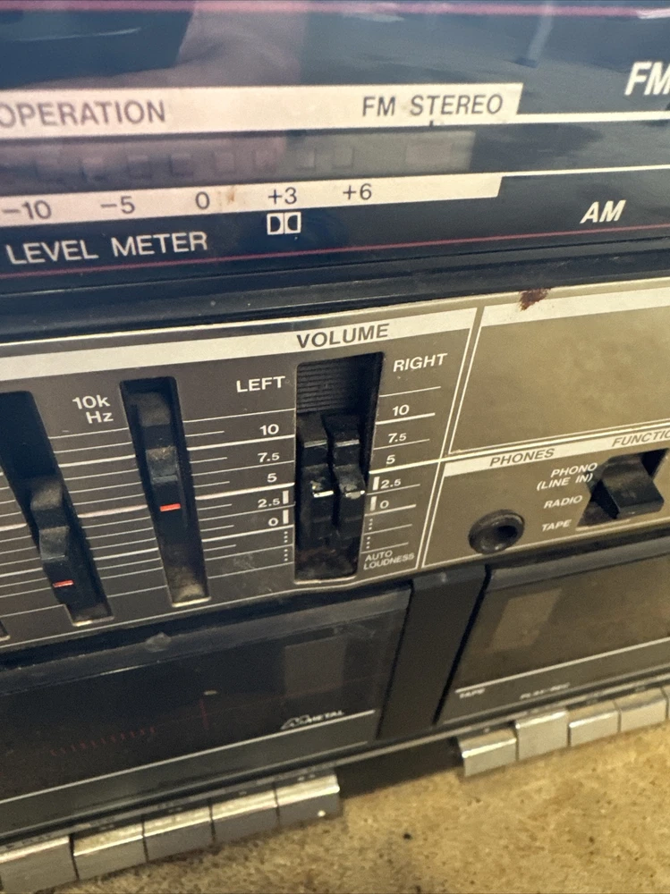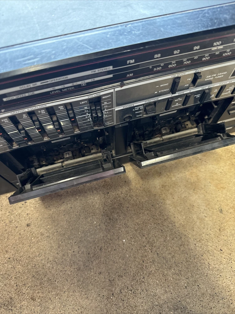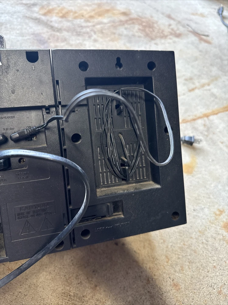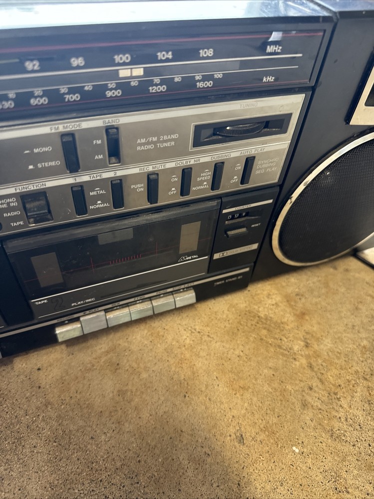 Only the radio works. See photos. Sold as is. Antenna is broken off but still gets signal. Audio is special. The left doesn’t always go full sound/loud etc. takes fineness to maybe even get a chance at it to come out like it is supposed to. I didn’t know if the other buttons work like they are supposed to. Battery compartment is missing the plate and there is corrosion. Didn’t test that. Power cord only comes with as shown. Wear and tear and paint etc on the unit. Tape player didn’t seem to move when pressed play. Sold as is. It was dirty inside. Parts only but the radio did turn on and play. It’s been in the garage so maybe needs a good cleaning in the ports etc to maybe get it working?? Sold as is.