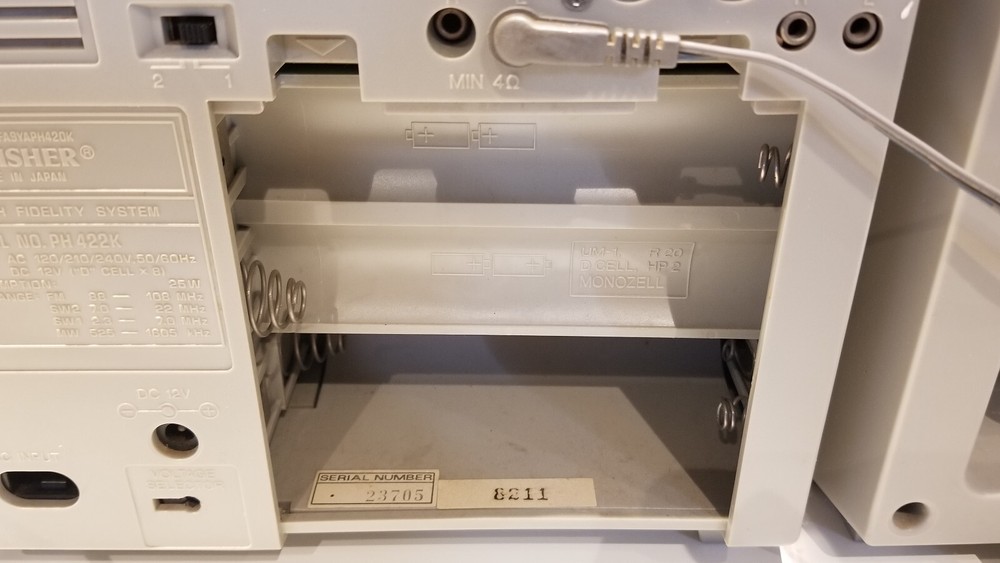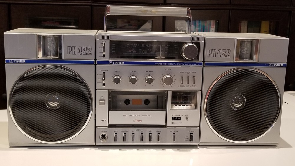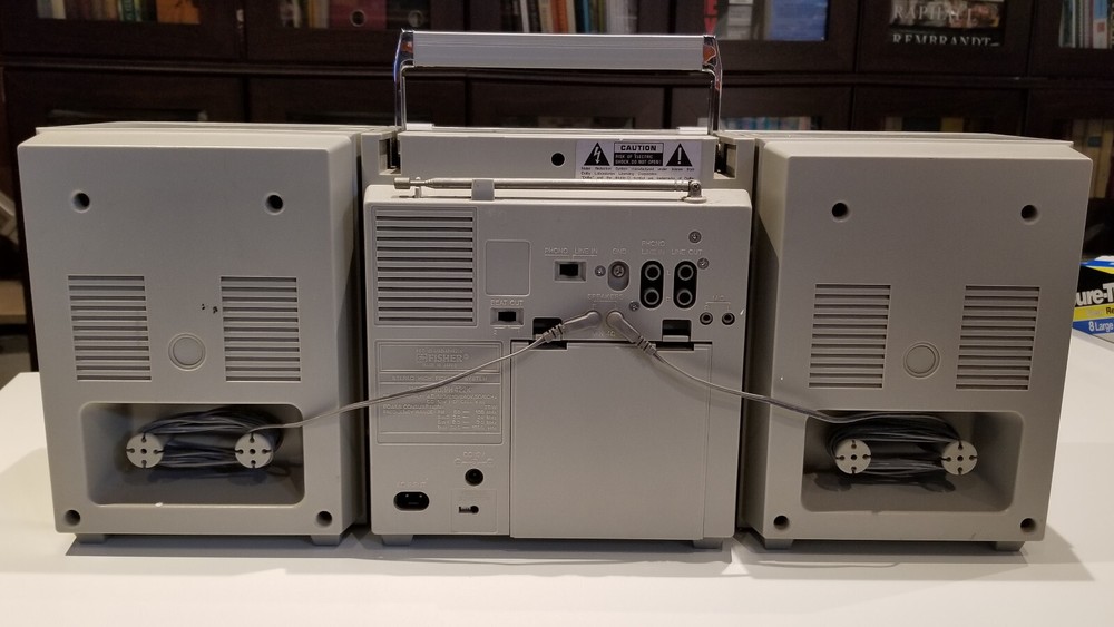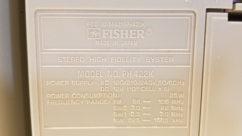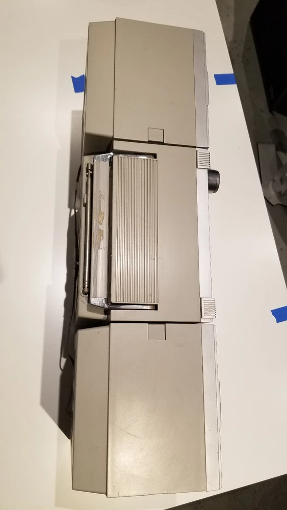 Disclaimer: description of condition below is based on my personal perception of reality and may differ from others. Trust me, it would be much more enjoyable to watch it at your home than over Ebay No warranties expressed or implied Sold as is, no returns, no refunds Relatively clean ( much cleaner than the other one on Ebay) All knobs/button are present, antenna is present. Radio works, tape probably requires new belts - motor spins, but does not wind tape No power cable