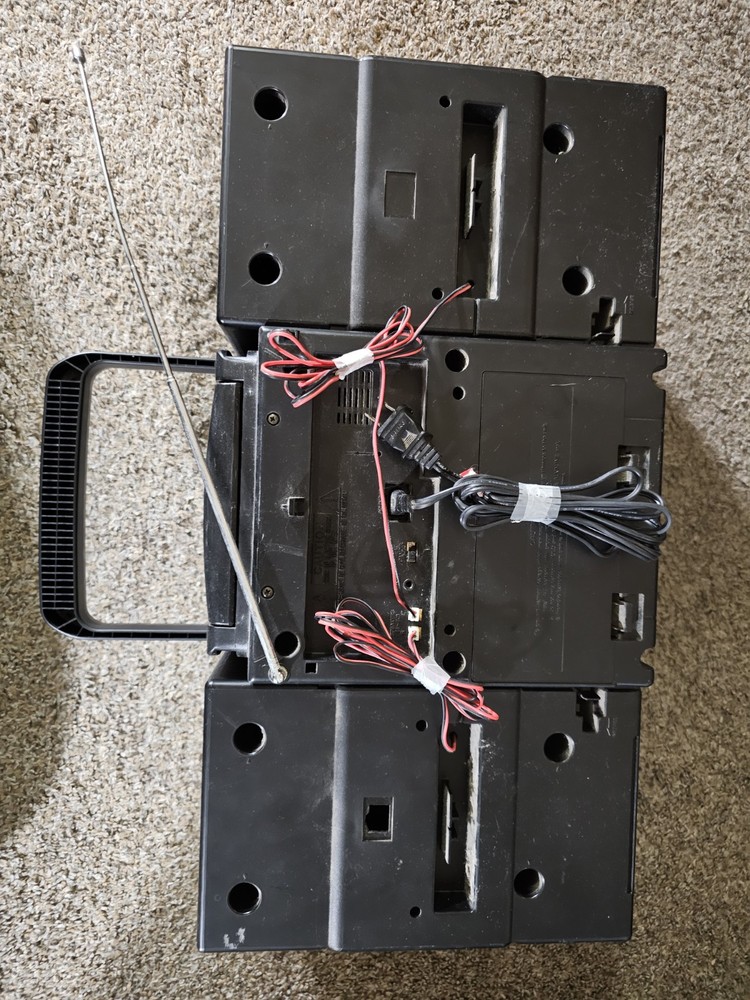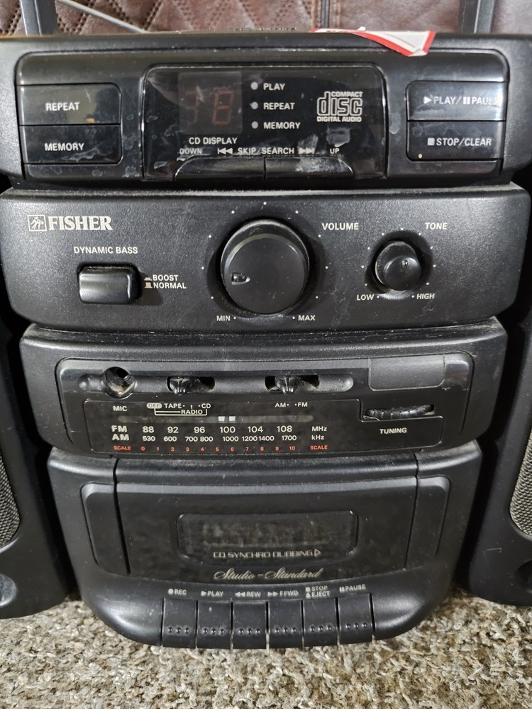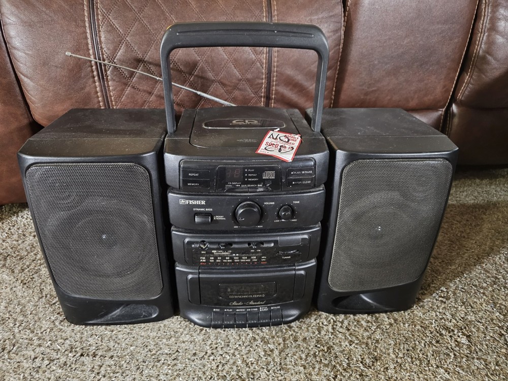 The Fisher PH-D310 is a versatile boombox featuring AM/FM radio, CD player, and cassette tape playback capabilities. With a sleek black design, this boombox was manufactured in 1994 and can play both cassette tapes and CDs. Its missing paets or is INOP. This portable audio device is perfect for those who enjoy listening to music on various formats while on the go or at home.
