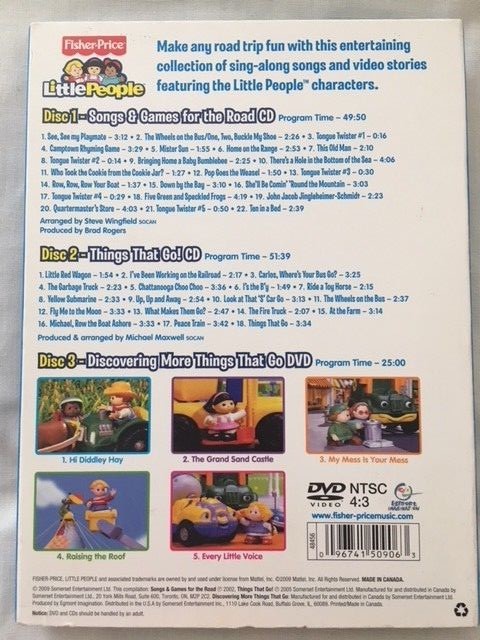 FISHER PRICE LITTLE PEOPLE ROAD TRIP FUN SING ALONGS, GAMES & VIDEO STORIES 3 CDS. FOR YOUR KIDS ON THOSE LONG AND SHORT DRIVING TRIPS! TIME FOR VACATION! BINA23