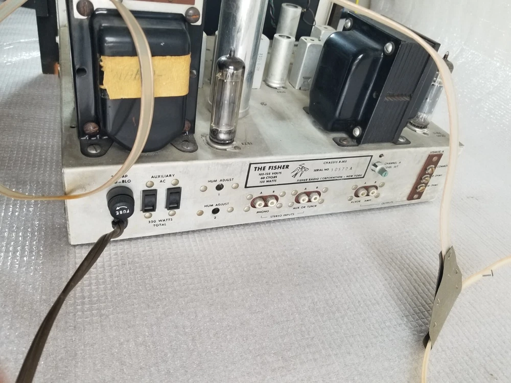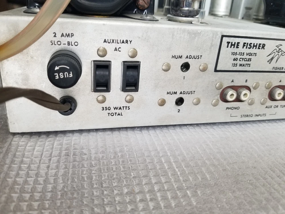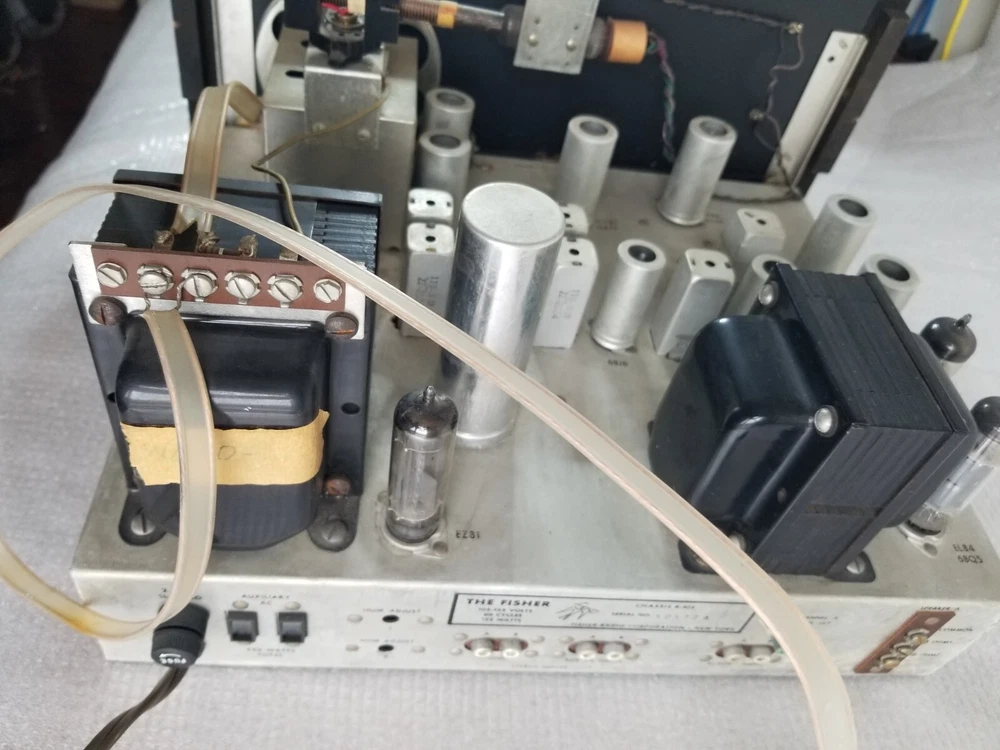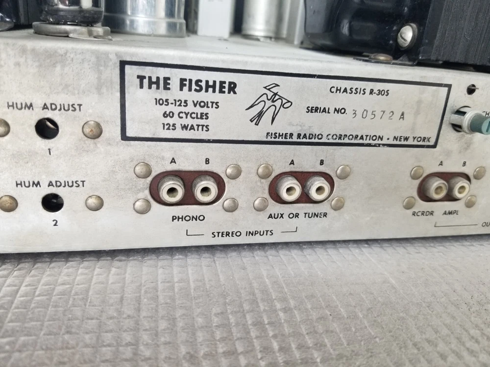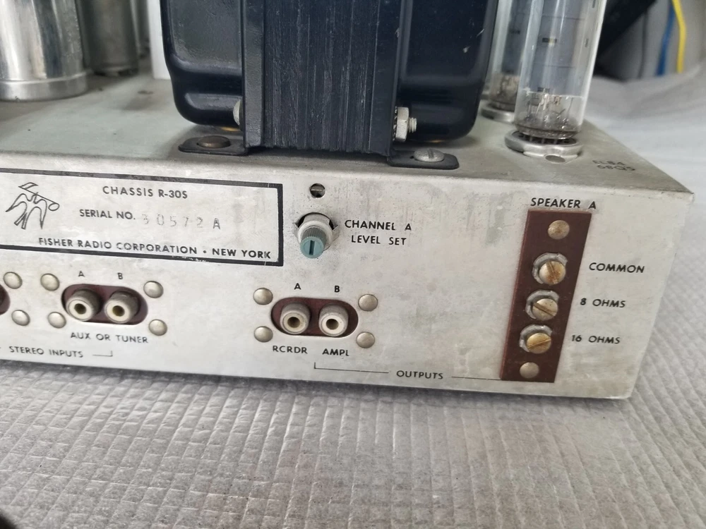 INFO: " .... turned out to be an R-30S. If you don't look closely the S can look like a 5. The R-30S is an interesting chassis from 1959. It has a mono tuner, a stereo preamp and a single channel EL84 output. It was intended to be paired with a 30-A monoblock housed in a separate 560 'Stereo Companion' speaker enclosure. I have one in a '59 Contemporary II console with the 560 both in my living room. I think it's a great system as long as you don't mind your FM mono. It doesn't have a magnetic phono input and will need a separate preamp unless you use a high output (ceramic) cartridge. The advantage of that is that you can use the phono input as an aux input - there is no EQ. " " The R-30-S was the 1959 chassis for the C-810 contemporary. The only real difference is the MPX jack and the additional preamp output for a "B" CHANNEL. The 560 companion (with the 30A amp) would connect to it and you'd get stereo from the Record Changer. Also with the addition of an external MPX unit you could wire it up for FM stereo. You'd wire in the MPX to the AUX RCA's and get MPX stereo. It's not as simple as all that but it can be done. Otherwise the R-30-S and the R20 are basically the same. Mr. FISHER gave you all kinds of options during the late 50's into the early 60's as Mono changed over to Stereo. Manual is at the FISHERCONSOLES site. http://www.fisherconsoles.com/contemporary II c810 service" This setup also included an outboard phono preamp for consoles equipped with magnetic cartridges , which Fisher sold separately as the PR 66.