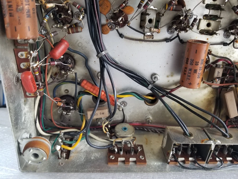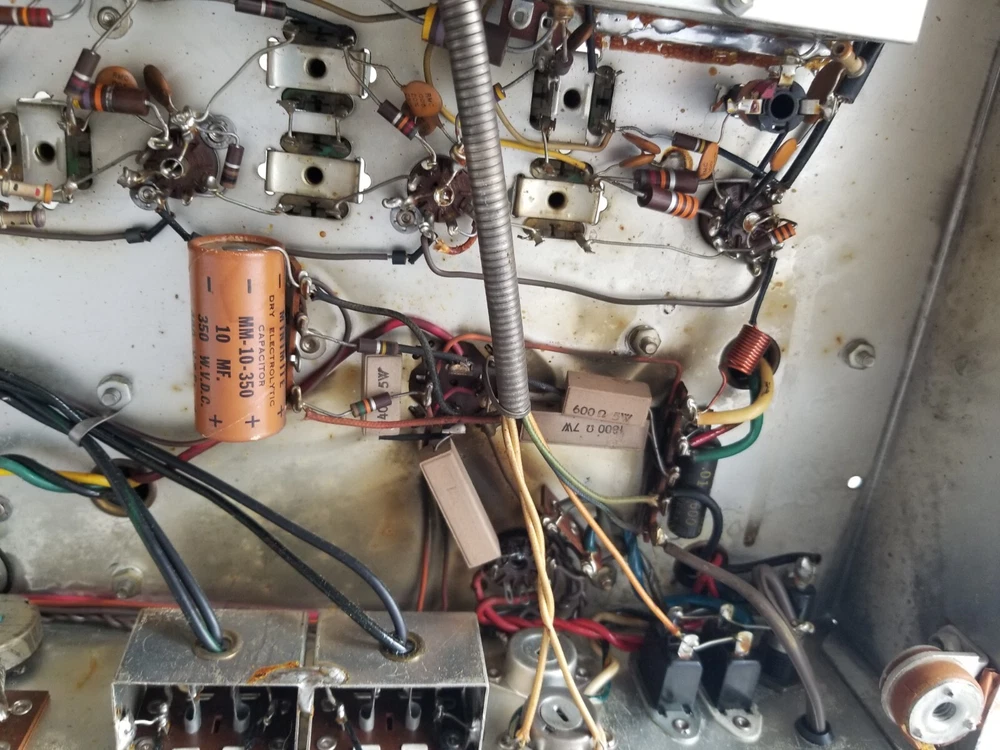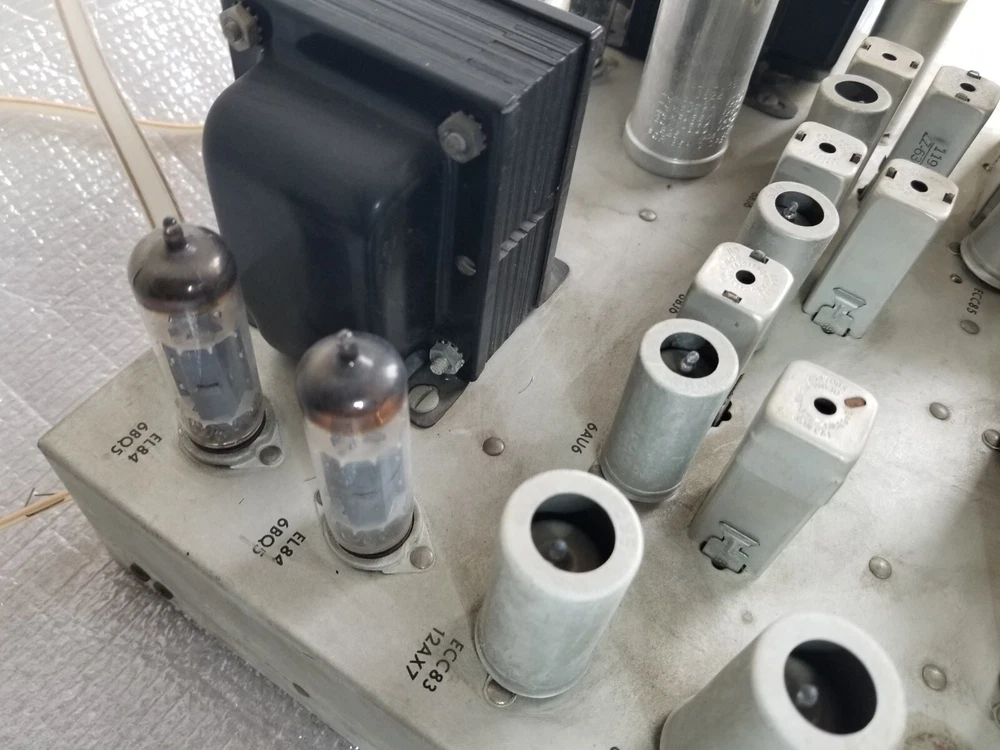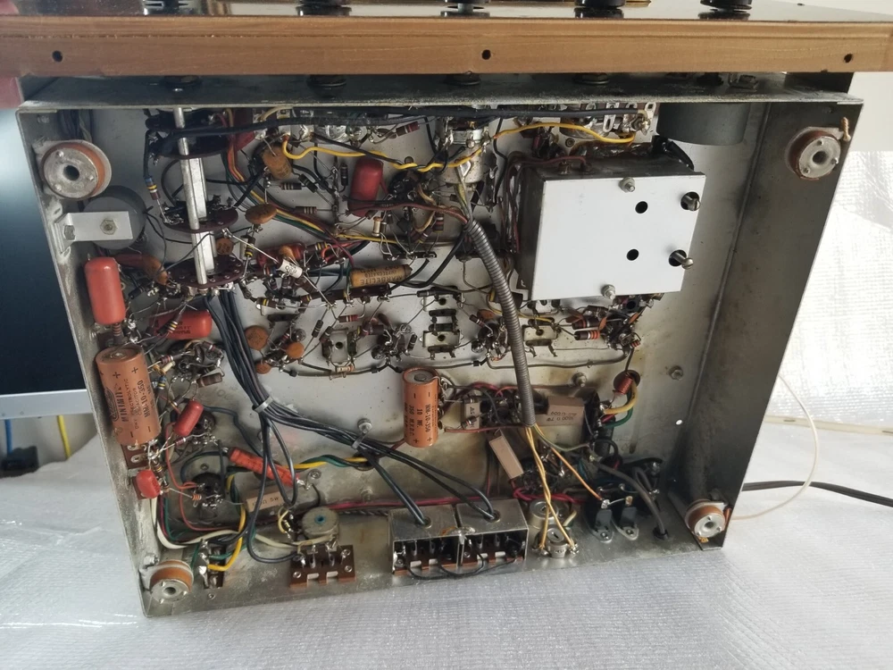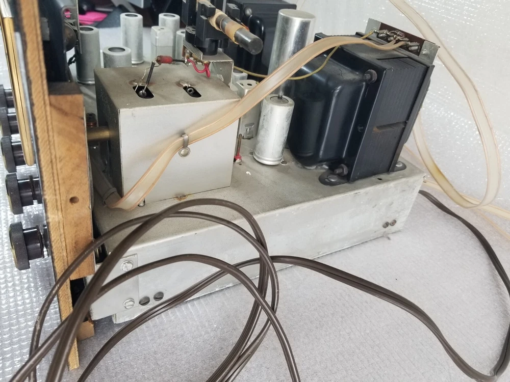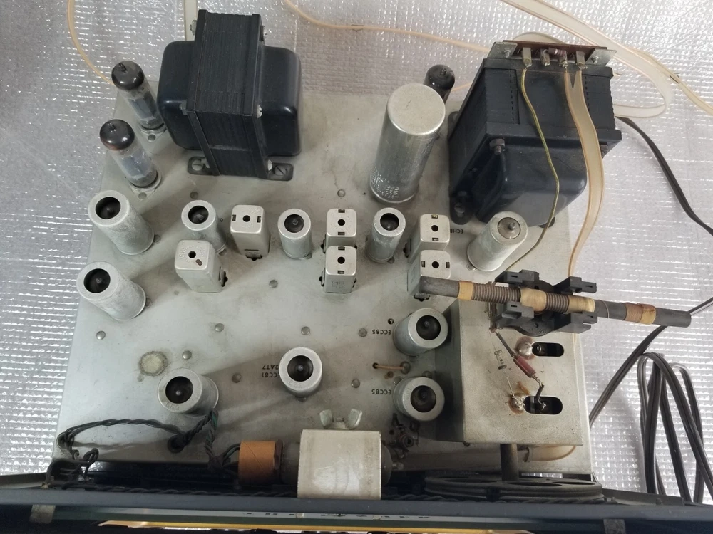INFO: " .... turned out to be an R-30S. If you don't look closely the S can look like a 5. The R-30S is an interesting chassis from 1959. It has a mono tuner, a stereo preamp and a single channel EL84 output. It was intended to be paired with a 30-A monoblock housed in a separate 560 'Stereo Companion' speaker enclosure. I have one in a '59 Contemporary II console with the 560 both in my living room. I think it's a great system as long as you don't mind your FM mono. It doesn't have a magnetic phono input and will need a separate preamp unless you use a high output (ceramic) cartridge. The advantage of that is that you can use the phono input as an aux input - there is no EQ. " " The R-30-S was the 1959 chassis for the C-810 contemporary. The only real difference is the MPX jack and the additional preamp output for a "B" CHANNEL. The 560 companion (with the 30A amp) would connect to it and you'd get stereo from the Record Changer. Also with the addition of an external MPX unit you could wire it up for FM stereo. You'd wire in the MPX to the AUX RCA's and get MPX stereo. It's not as simple as all that but it can be done. Otherwise the R-30-S and the R20 are basically the same. Mr. FISHER gave you all kinds of options during the late 50's into the early 60's as Mono changed over to Stereo. Manual is at the FISHERCONSOLES site. http://www.fisherconsoles.com/contemporary II c810 service" This setup also included an outboard phono preamp for consoles equipped with magnetic cartridges , which Fisher sold separately as the PR 66.