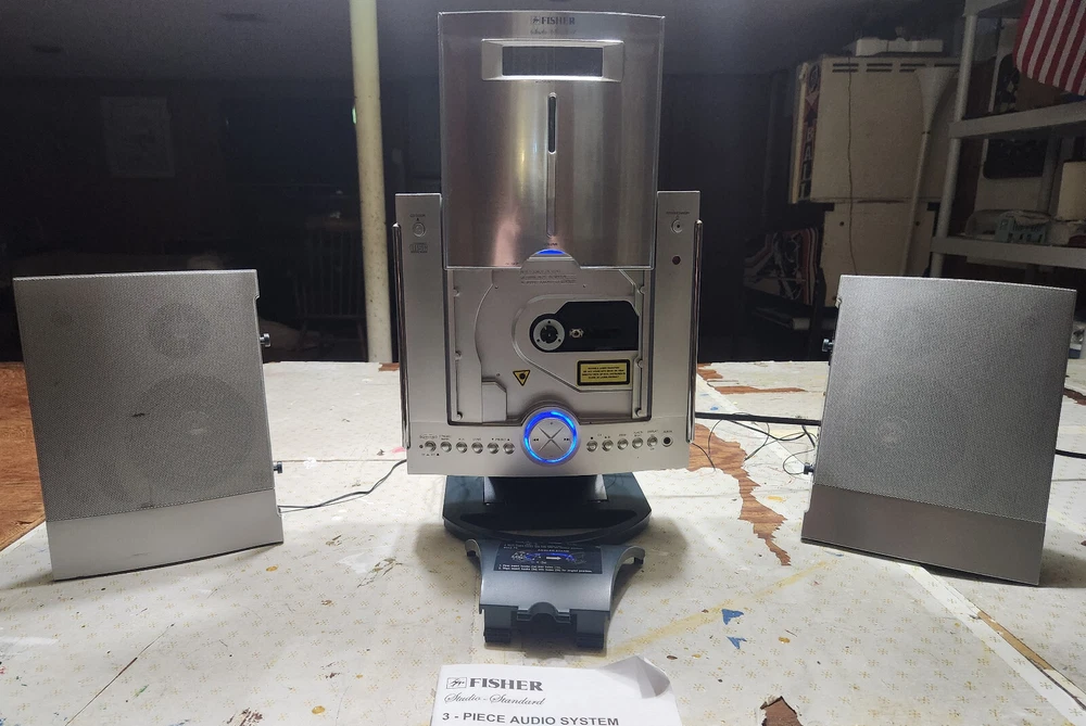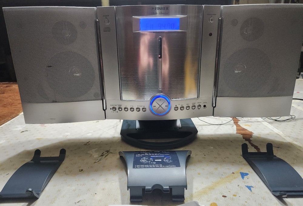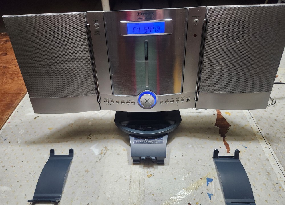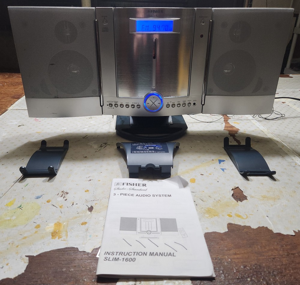 FISHER SLIM-1600 SLIM-PROFILE AUDIO SYSTEM CD, AM/FM STEREO RADIO WALL HANGING Good condition, everything works.