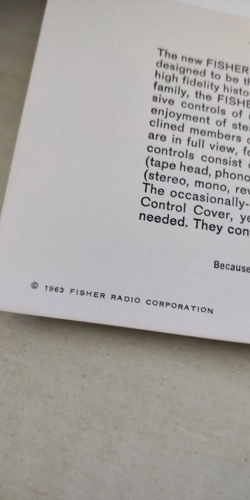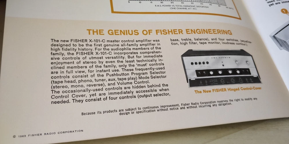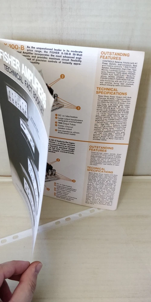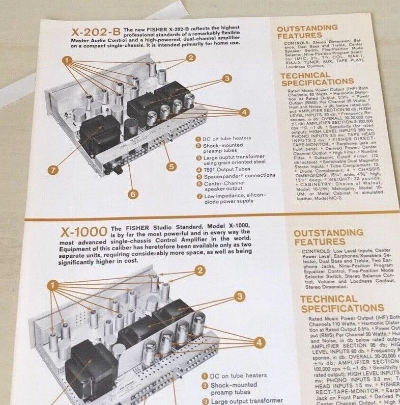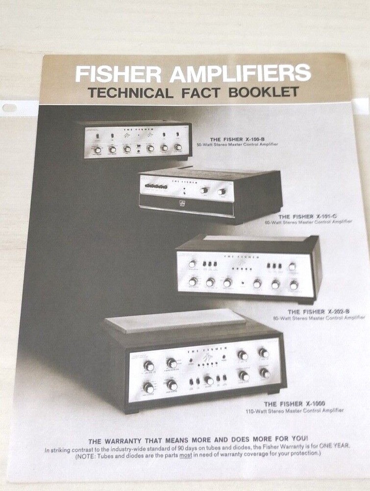 1963 FISHER STEREO AMPLIFIERS Technical Fact Booklet - 4pages Features models: X-100-B X-101-C X-202-S X-1000 Original document Comes form a former missile engineer for the US Air Force. Was employed under this position during 1950's and 1960's, may have continued on afterwards, all the paperwork I have are from that period. Superb condition . Well cared for. pages are clean and crisp. Looks like it could have been printed recently not 60 years ago.