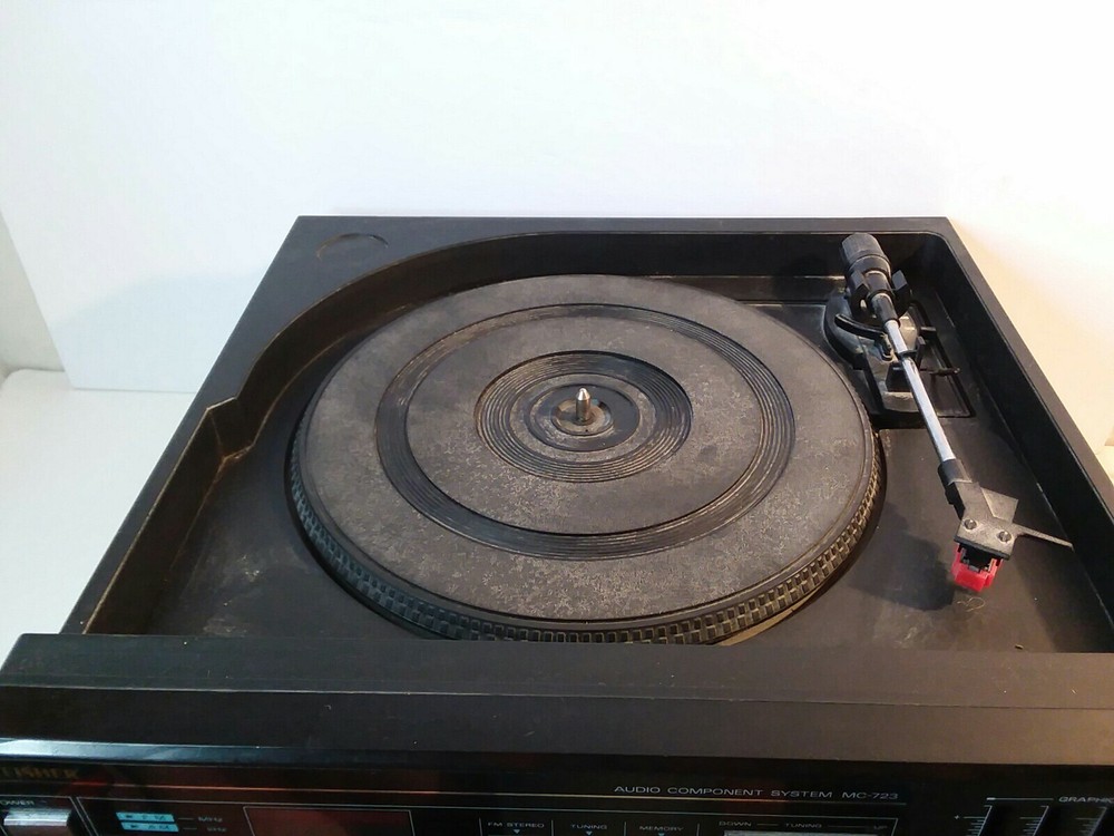 Vintage FISHER STEREO TURNTABLE MC-723 turntable plays, cassette deck not working. Turntable tested and working cassette tape deck not working sold as is for parts or repair, no dust cover for top
