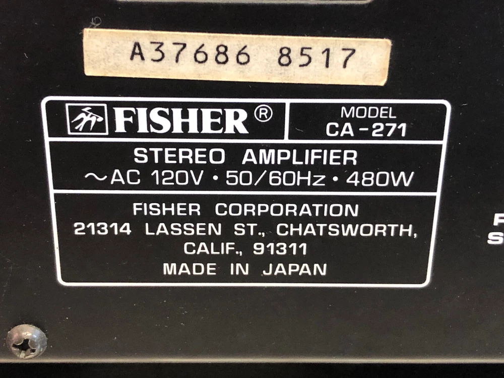 FISHER Stereo Amplifier CA-271 - PARTS OR REPAIR - Unknown working condition Condition: Parts Local Pick Up Available See picture for details, and feel free to contact us with questions or concerns. Should anyone wish to come by the warehouse in Rochester, NY area to look at any of our items for sale, please feel free to contact us. Thank You!