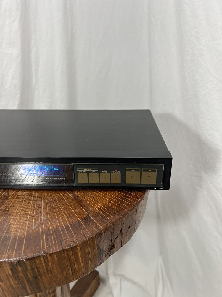 This FISHER Studio Standard FM-273 AM/FM Synthesizer Tuner is a reliable and high-quality device for enjoying your favorite radio stations. It has a sleek black color with digital display and offers stereo L/R RCA audio outputs for clear sound. The tuner supports FM modes and has a 12 W power output. It is a great addition to your home audio components and is made in Japan. The Fisher FM-273 model features digital tuning and AM/FM bands. This tuner does not come with any custom bundle and is a perfect device for radio lovers.