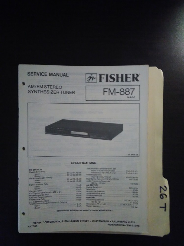 FM-887 Fisher service manual original repair guide for stereo synthesizer tuner