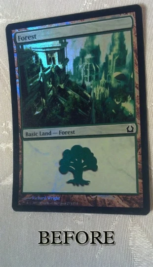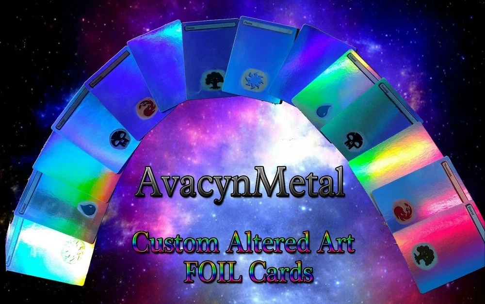 This auction is for a FOIL MTG Lands - Forest, Plains, Island, Swamp, Mountain with altered art (Please see images ). These altered cards are acceptable for a tournament, played in a sleeve, but the final authority on acceptable cards is the head Judge of the tournament. These are authentic, legal, genuine Magic the Gathering cards as shown in the picture and stated in the auction title. This is NOT an unauthorized copy or an illegal replica of a Magic the Gathering card. * Latest DCI Policy on Tournament Legality: * MAGIC: THE GATHERING® TOURNAMENT RULES Effective July 1, 2009 Section 3.3 Authorized Cards: "Artistic modifications are acceptable, provided that the modifications do not make the card unrecognizable or contain substantial strategic advice. The Head Judge is the final authority on acceptable cards for a tournament." ****************** BONUS!!! ******************* For EVERY $35 ( NOT including shipping, taxes, & handling charges ) you spend on our FOIL alternative card listings, you will receive: 1 BONUS FOIL alternative art card for FREE as our Special THANK YOU!!! *** 1 BONUS Sealed Random Booster Pack! Just our way of saying THANK YOU for your order!... and YES, you do receive both BONUS for every $35 ( NOT including shipping, taxes, & handling charges ) spent! Please see images. If you have questions please feel free to ask. *** Please contact for a complete list of available Custom Alternative Art cards. Custom orders are also available. *** FOIL Custom Alternative Art cards (that aren't FOIL Basic lands) should only be used mostly for casual play (to pimp out your deck) in either a non-tournament setting, an EDH Commander deck , or a Type 4 deck . *** FOIL Custom Alternative Art cards (that aren't FOIL Basic lands) are ONLY playable in a DCI sanctioned tournament IF you have an MTG card in your possession (Speak to a head judge for exact restrictions) . If you have any questions or concerns, please feel free to contact me to discuss. I am happy to answer any questions you may have as I am committed to providing you with 5 STAR service! :-) --- Shipping & Handling for this item INTERNATIONALLY will be $3.00 for this item (CANADA is $2.00) and $1.00 for each additional item won after that (granted all items are paid for in the same PayPal payment). --- Payment must be received within 7 days from end date of auction. If payment is NOT received or NO contact has been made by the buyer then the auction is forfeit and then becomes available for re-listing. --- This item will ship normally after 2 - 3 business days after the successful payment. --- NOTE: This item is hand made and although every effort is made to make this item as perfect as possible, there may be some minor flaws. Please contact to discuss if you discover an issue with the quality of this product that is unacceptable with you. Thank You!