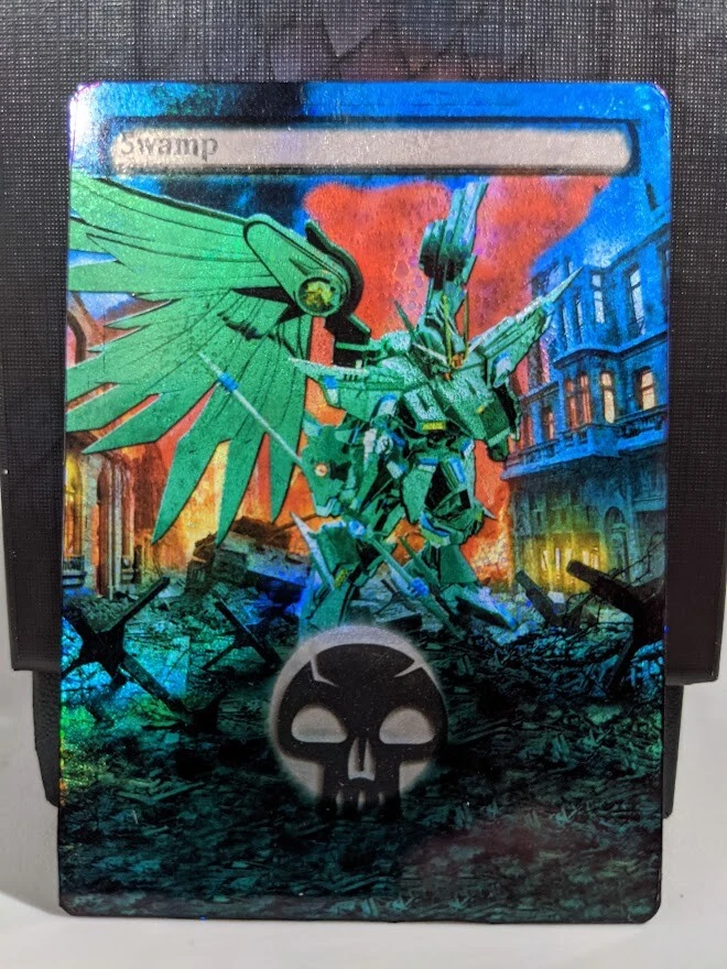 This auction is for a FOIL MTG Lands - Forest, Plains, Island, Swamp, Mountain with altered art (Please see images ). These altered cards are acceptable for a tournament, played in a sleeve, but the final authority on acceptable cards is the head Judge of the tournament. These are authentic, legal, genuine Magic the Gathering cards as shown in the picture and stated in the auction title. This is NOT an unauthorized copy or an illegal replica of a Magic the Gathering card. * Latest DCI Policy on Tournament Legality: * MAGIC: THE GATHERING® TOURNAMENT RULES Effective July 1, 2009 Section 3.3 Authorized Cards: "Artistic modifications are acceptable, provided that the modifications do not make the card unrecognizable or contain substantial strategic advice. The Head Judge is the final authority on acceptable cards for a tournament." ****************** BONUS!!! ******************* For EVERY $35 ( NOT including shipping, taxes, & handling charges ) you spend on our FOIL alternative card listings, you will receive: 1 BONUS FOIL alternative art card for FREE as our Special THANK YOU!!! *** 1 BONUS Sealed Random Booster Pack! Just our way of saying THANK YOU for your order!... and YES, you do receive both BONUS for every $35 ( NOT including shipping, taxes, & handling charges ) spent! Please see images. If you have questions please feel free to ask. *** Please contact for a complete list of available Custom Alternative Art cards. Custom orders are also available. *** FOIL Custom Alternative Art cards (that aren't FOIL Basic lands) should only be used mostly for casual play (to pimp out your deck) in either a non-tournament setting, an EDH Commander deck , or a Type 4 deck . *** FOIL Custom Alternative Art cards (that aren't FOIL Basic lands) are ONLY playable in a DCI sanctioned tournament IF you have an MTG card in your possession (Speak to a head judge for exact restrictions) . If you have any questions or concerns, please feel free to contact me to discuss. I am happy to answer any questions you may have as I am committed to providing you with 5 STAR service! :-) --- Shipping & Handling for this item INTERNATIONALLY will be $3.00 for this item (CANADA is $2.00) and $1.00 for each additional item won after that (granted all items are paid for in the same PayPal payment). --- Payment must be received within 7 days from end date of auction. If payment is NOT received or NO contact has been made by the buyer then the auction is forfeit and then becomes available for re-listing. --- This item will ship normally after 2 - 3 business days after the successful payment. --- NOTE: This item is hand made and although every effort is made to make this item as perfect as possible, there may be some minor flaws. Please contact to discuss if you discover an issue with the quality of this product that is unacceptable with you. Thank You!