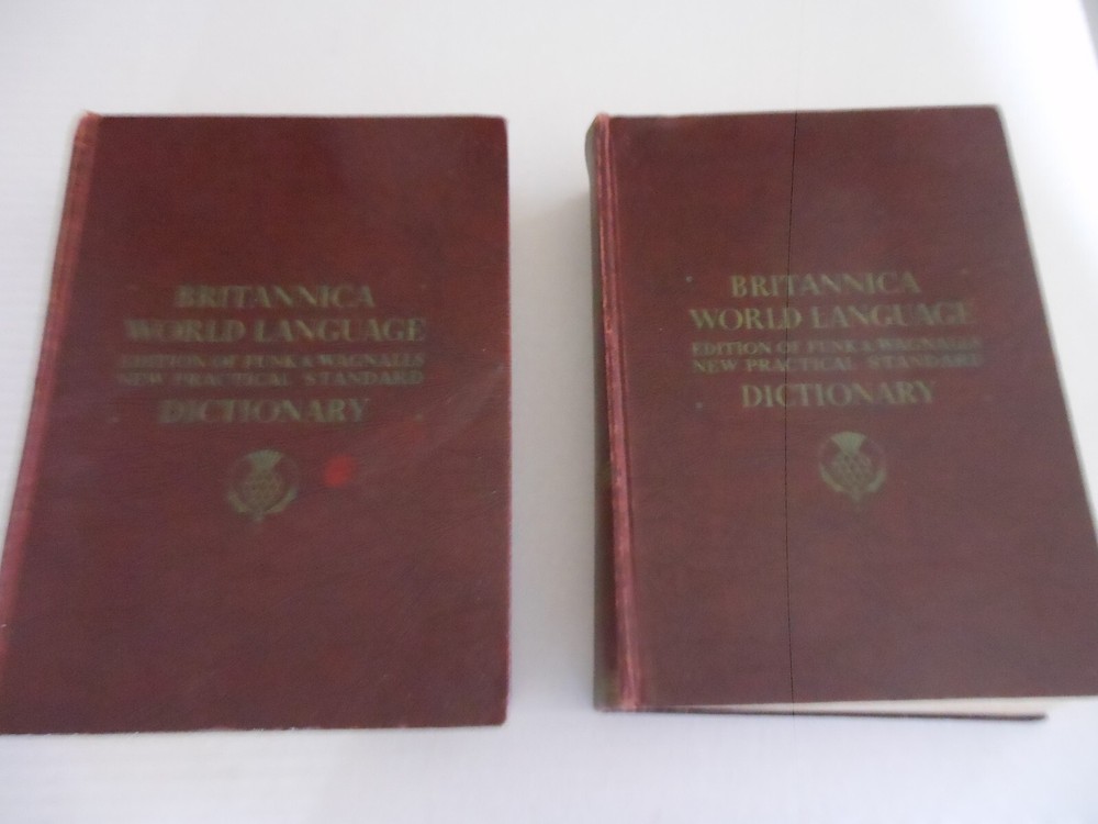 THIS IS A TWO VOLUME BRITANNICA WORLD LANGUAGE EDITION FROM 1955. VOLUME 1 IS A-P AND VOLUME 2 IS Q-Z. THERE IS SHELF WEAR ON THE COVER AND THE FRONT COVER OF VOLUME 1 HAS PULL AWAY FROM THE REST OF THE BOOK. THE INTERIOR OF BOTH BOOKS ARE IN EXCELLENT CONDITION WITH NO TEARING OR MARKS. PLEASE SEE PICTURES FOR CONDITION. THIS SET IS VERY HEAVY. IF THERE ARE EXCESS SHIPPING CHARGES, I WILL REFUND. I HAVE A CLEAN AND SMOKE FREE HOME. PLEASE LOOK AT MY OTHER AUCTIONS. I COMBINE SHIPPING FOR MULTIPLE PURCHASES. THANK YOU FOR LOOKING AT MY AUCTION. I would appreciate a positive 5 star feedback from you. It is very important for a seller to receive this rating so Ebay will continue to allow me as a seller. If you feel my service did not rate a 5 star, please email me to allow me to rectify the situation. When I receive feedback from you, I will also leave feedback for you. Thank you so much. PLEASE PAY WITHIN 1 DAY OF PURCHASE.