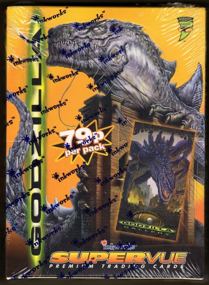 Factory Box- 1998 Inkworks Godzilla Supervue Premium Trading Cards - Sealed Box - UK Edition Factory Box- 1998 Inkworks Godzilla Supervue Premium Trading Cards - Sealed Box - UK Edition. Multiple wins will have shipping combined for a reduced rate. Many of my lots are for cards that I have multiple copies of. For that reason, I do not generally describe condition in my lot listings. For that same reason, the photo may not be the exact card you will receive. With regards to condition, the vast majority of my cards are NrMT/MT with no post-production damage. When I encounter cards that are damaged, I generally toss them rather than place them in inventory. The exception might be a difficult to find card that I have only a single copy of. I will describe any defects if that is the case. Larger pieces such as multiple card panels that were distributed in magazines and at shows are also generally NrMt/Mt but may show some edge wear. Sometimes they are stressed when removed from the magazines. Ask if condition is critically important to you. Please visit my eBay store for hundreds of additional promo items at reasonable prices. Add now to ship with your auction winnings and save on P&H charges. PromoCardsOnline If you win multiple lots, I will combine shipping charges. If unsure, please wait for an invoice. Powered by SixBit's eCommerce Solution