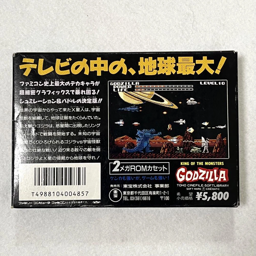 This Famicom Godzilla game is a fantastic find for collectors! The box and manual add great nostalgic value, and despite some expected wear, it’s in solid condition for its age. The cartridge works perfectly, bringing back that classic monster chaos. If you're a fan of retro gaming or Godzilla, don’t miss this one—it’s a fun piece of gaming history! The seller is also super helpful if you're hunting for other titles. Highly recommend!