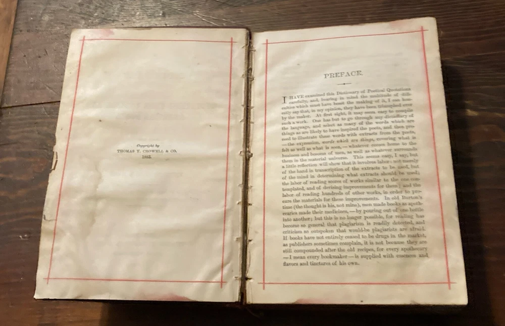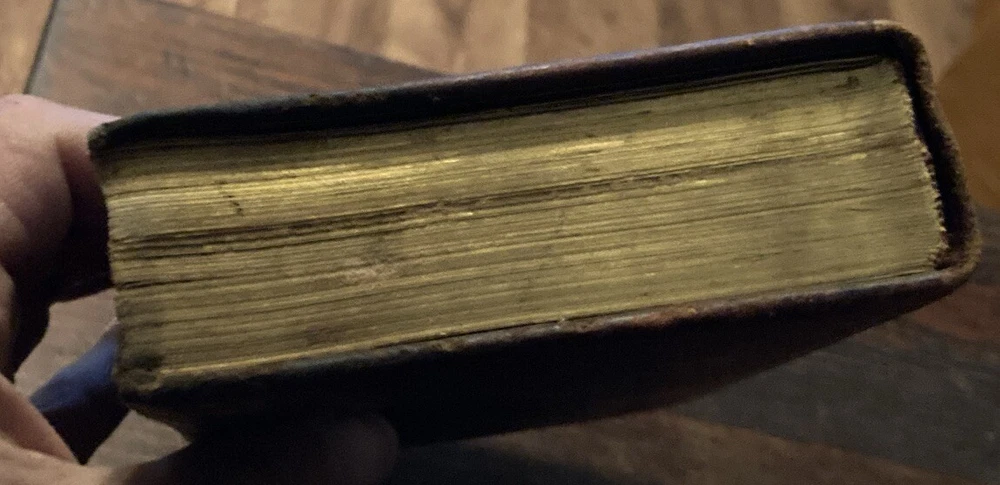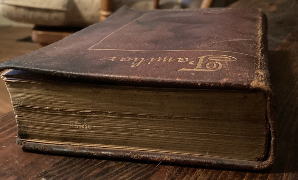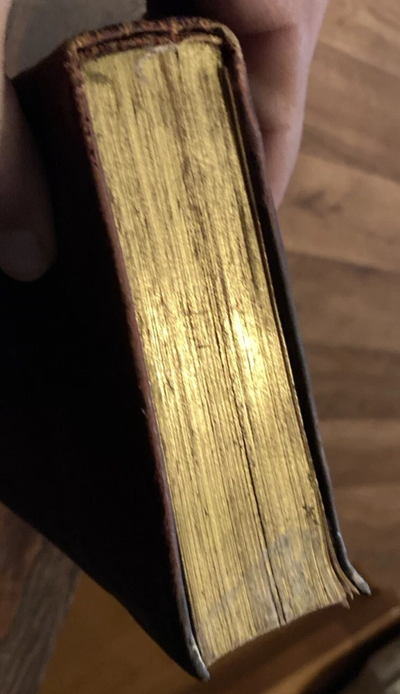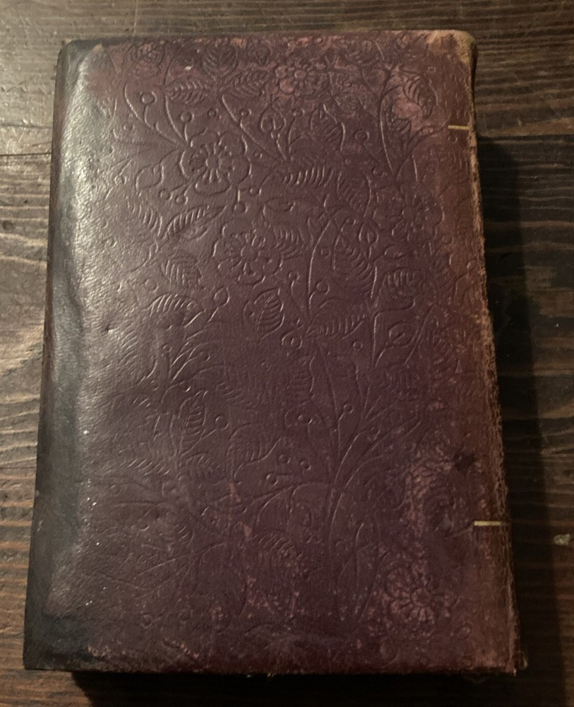 Rare leather cover edition 1883 with engraved flower designs on cover and back and gold edge pages and lettering on front and rear cover and bind. In the condition u see Once you get past the intro pages the rest of the pages are pretty clean As is as u see it.