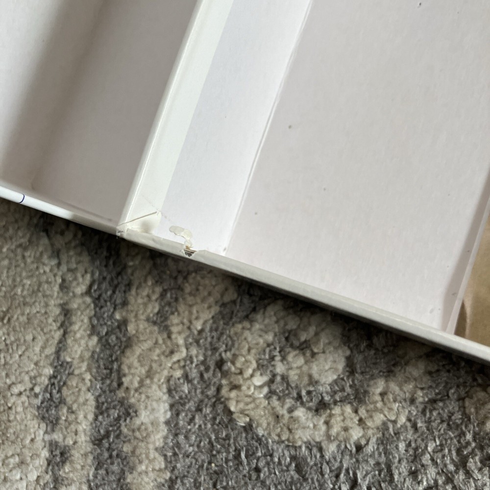 Box shows damage but book looks unread. Some scratches on the gold edges of pages.