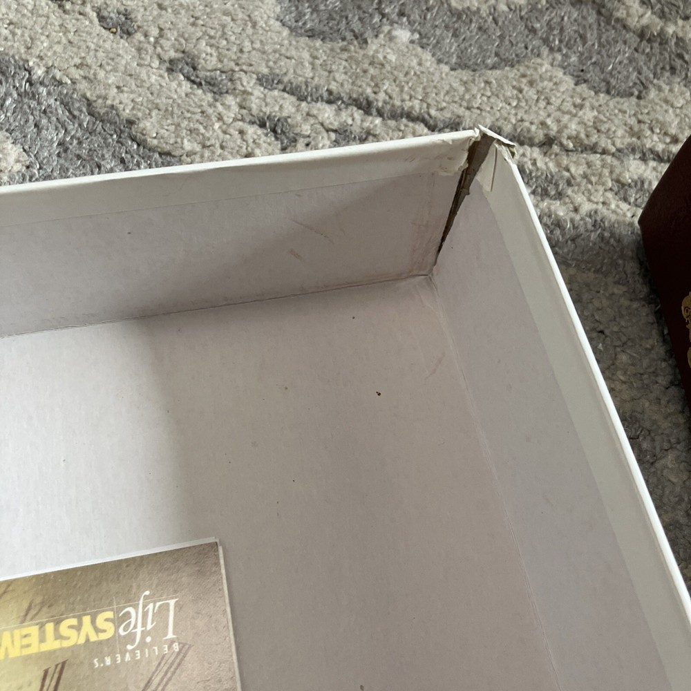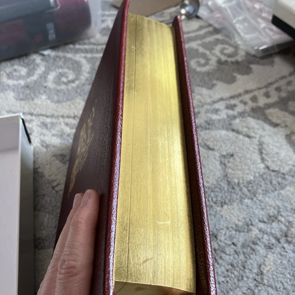 Box shows damage but book looks unread. Some scratches on the gold edges of pages....