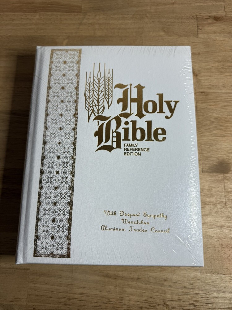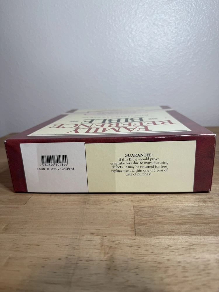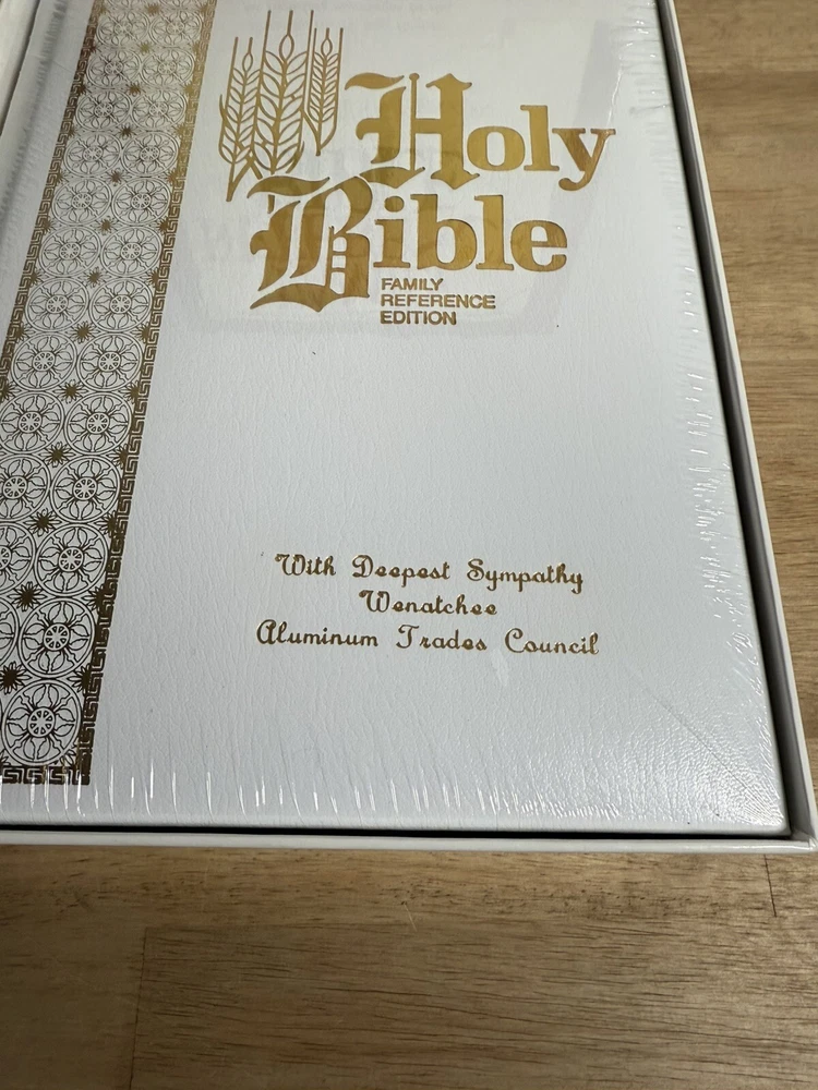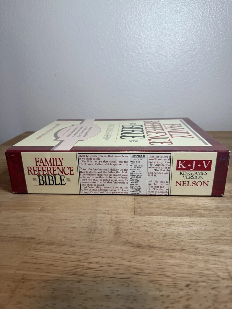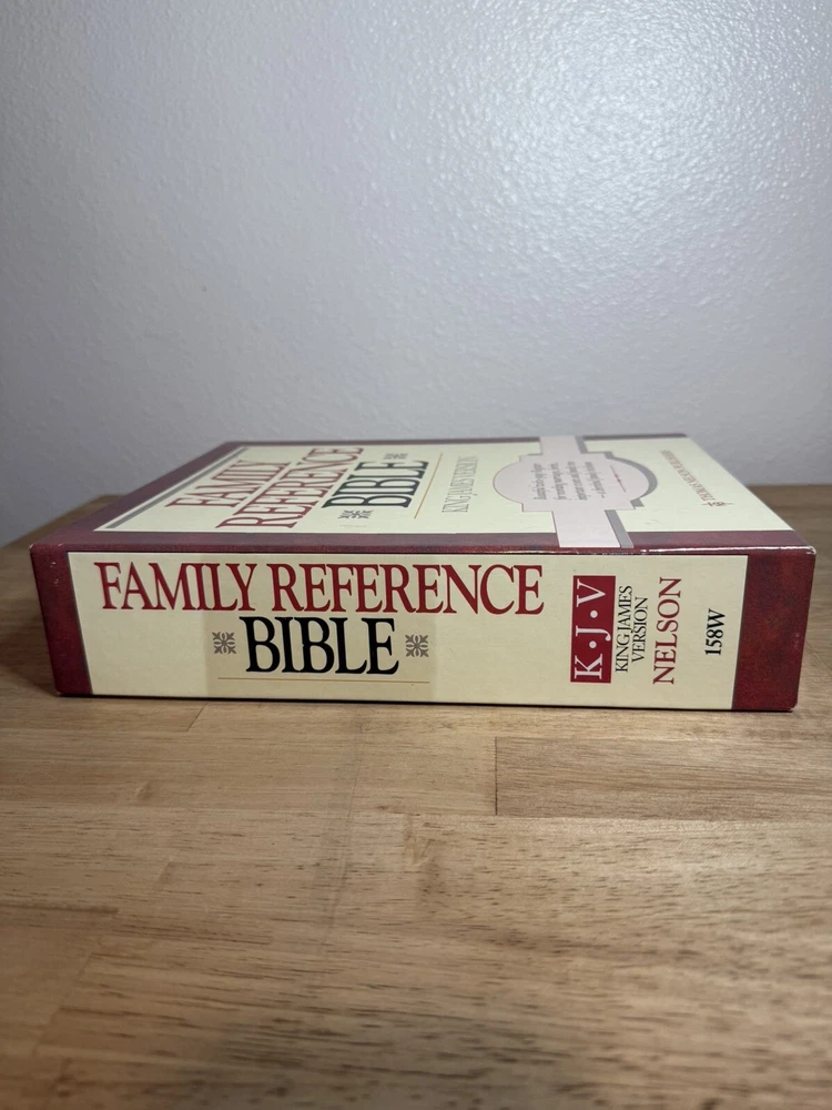 Family Reference Bible: King James Version White Bonded Leather Gilded Gold Page Edges Factory Sealed in Box Please see all pictures Smoke-free home. Features White Bonded Leather Gilded-Gold Page Edges 12 Page Register for Recording Marriages, Births, Important Events and Family Tree
