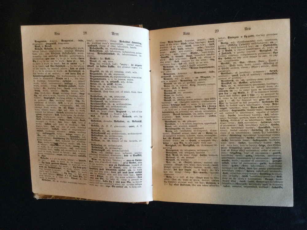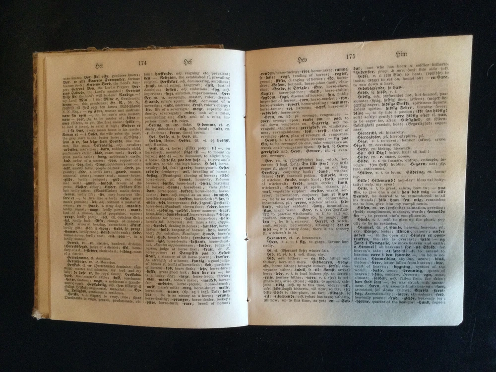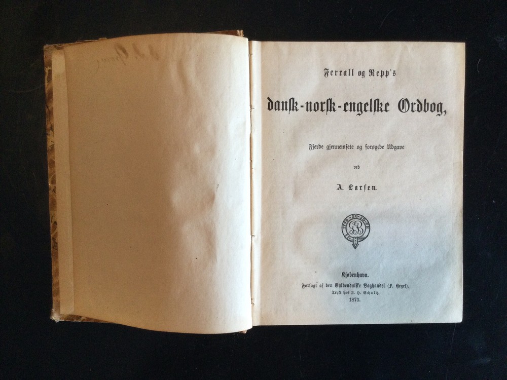 Ferall og Kepp's Dansk-norsk-engelske Ordbog, German Dictionary, 1873. Danish-Norwegian-English Dictionary. Calf spine with marbled covers. Shipped with USPS Media Mail....