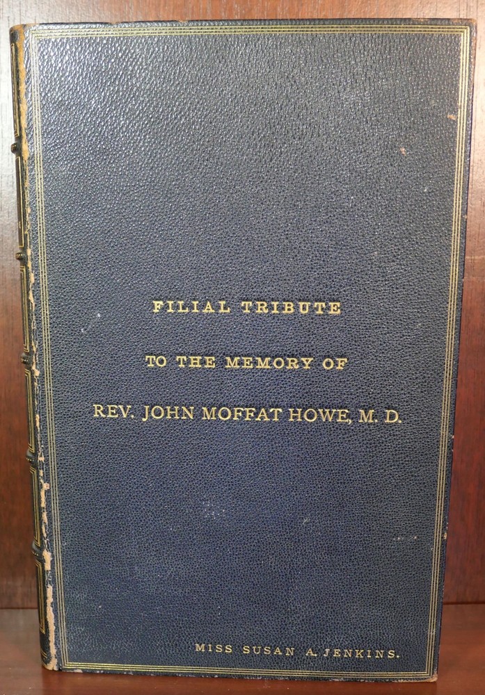 Filial Tribute to The Memory of Rev. John Moffat Howe Title: Filial Tribute to The Memory of Rev. John Moffat Howe Publication: The De Vinne-Press, 1889 Description: Full Leather Binding. Full leather binding. Measuring approximately 9.75" x 6.25" with 254 numbered pages. This book is in good minus condition. Moderate scuffing and chipping to both ends of spine and around all corners of boards. Gilt lettering and design on spine and front board is still full and vivid. Both hinges are cracked but no mesh is exposed. Interior pages are clean. Please view the many other rare titles available for purchase at our store. We are always interested in purchasing individual or collections of fine books. Inventory #(O6-11). Seller ID: 6100 Subject: Autobiography/Biography/Memoir Ernestoic Books Terms All orders ship within two business days. Standard mail is USPS Media Mail. Expedited and international shipping are also available. We offer combined shipping on multiple orders. All items are guaranteed to be as described or they may be returned within 30 days of receipt for a full refund. This listing was created by Bibliopolis.