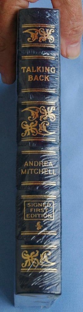 Offered For Sale is a Fine Sealed Copy of "Talking Back" Signed by Andrea Mitchell - published by The Easton Press - all is in fine condition, with clean pages, tight binding - never unwrapped or opened Fine Sealed Easton Press Copy of "Talking Back" Signed by Andrea Mitchell Fine Sealed Easton Press Copy of "Talking Back" Signed by Andrea Mitchell Click images to enlarge Description Offered For Sale is a Fine Sealed Copy of "Talking Back" Signed by Andrea Mitchell - published by The Easton Press - all is in fine condition, with clean pages, tight binding - never unwrapped or opened FLORIDA RESIDENT MUST PAY 7% STATE SALES TAX CAR2102 Shipping Items to continental US will be send via USPS media mail or Parcel Post unless other arrangements are made. Handling time is up to 4 business days prior to shipping. There are many expenses involved in shipping your product safely including padded mailers, bubble wrap, peanuts, tape, FRAGILE stickers, and in most cases insurance since insurance is now seller's responsibility. Understand that shipping costs may reflect a charge for these items. It is also sometimes difficult to estimate shipping costs before the item is actually packaged up. If you feel you have been overcharged, please contact me before leaving negative feedback. If there is a large discrepancy, I will make an adjustment, often before you ask! Terms of Sale Full refunds are available if not satisfied. Item must be returned in same condition as shipped. Kindly contact me immediately should you in any way be unhappy with your purchase, as I will make every effort to correct the situation, as evidenced by my feedback track record. Get images that make Supersized seem small. Showcase your items with Auctiva's Listing Templates! THE simple solution for eBay sellers. Track Page Views With Auctiva's FREE Counter
