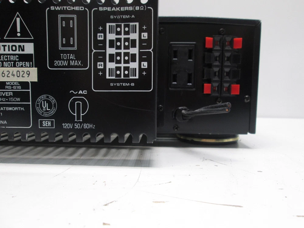 Fischer RS-616 - Receiver Amplifier - For Parts - Cut Cord - DENTED Condition Grade: C Functional Grade: F This item is sold AS-IS, with no guarantee of functionality. It has various issues that prevent it from functioning properly. Item likely missing parts/pieces. There are some marks and wear on the casing from general use. See pictures for further details. No further testing has been performed. Shipping Disclaimer: We do our best to ensure that our items arrive safely. Sometimes, however, they do sustain shipping damage. In the unlikely event that this happens to your item, please contact us immediately, and we will resolve the situation for you. Accessories Included: Power Cable: Not Included Remote: Not Included Other Accessories: Not Included Terms of Sale: Please email any questions prior to bidding. Please allow up to one business day for a reply. We do not ensure compatibility with various accessories, software, or other hardware. Please do your own research before purchasing. Our business hours are Monday-Friday 8:00AM-4:00PM CST. Note that sales tax may be applicable depending on buyer location. Be sure to check your shipping address. We are not responsible for items shipped to an old, incorrect, or invalid shipping address. Local pickup is only an option for our freight listings. We are otherwise not open to the public.