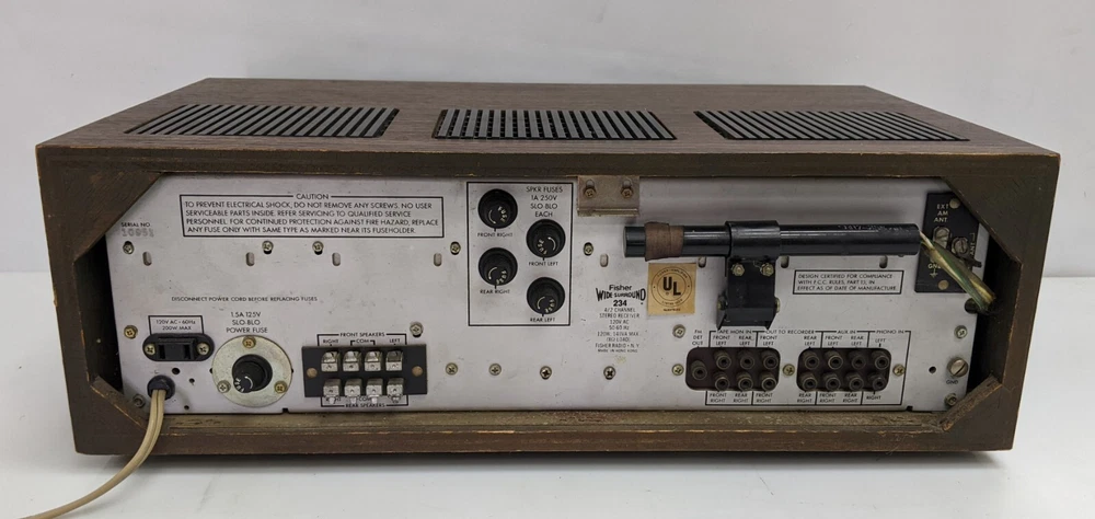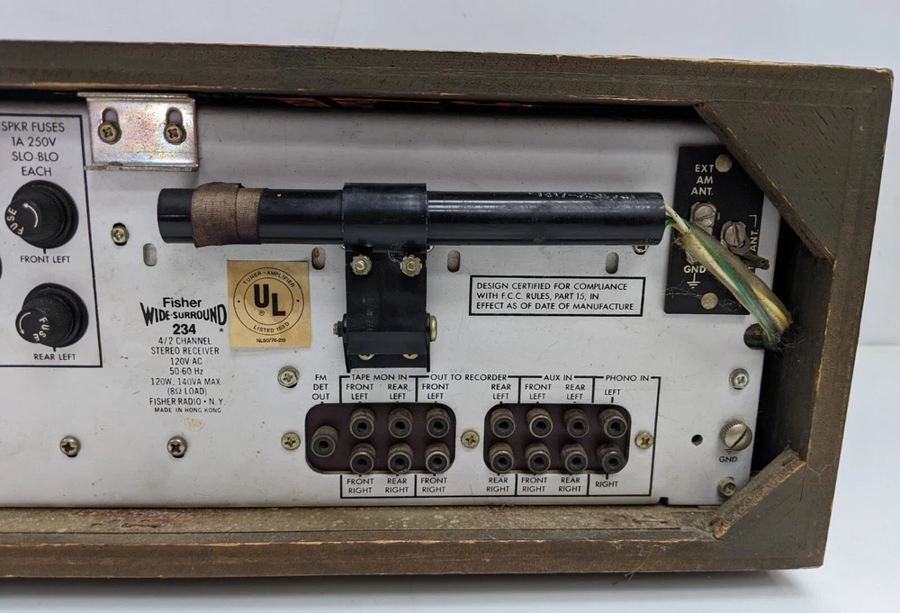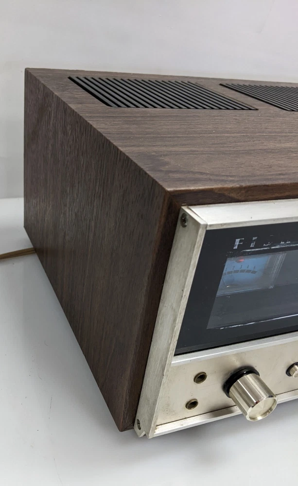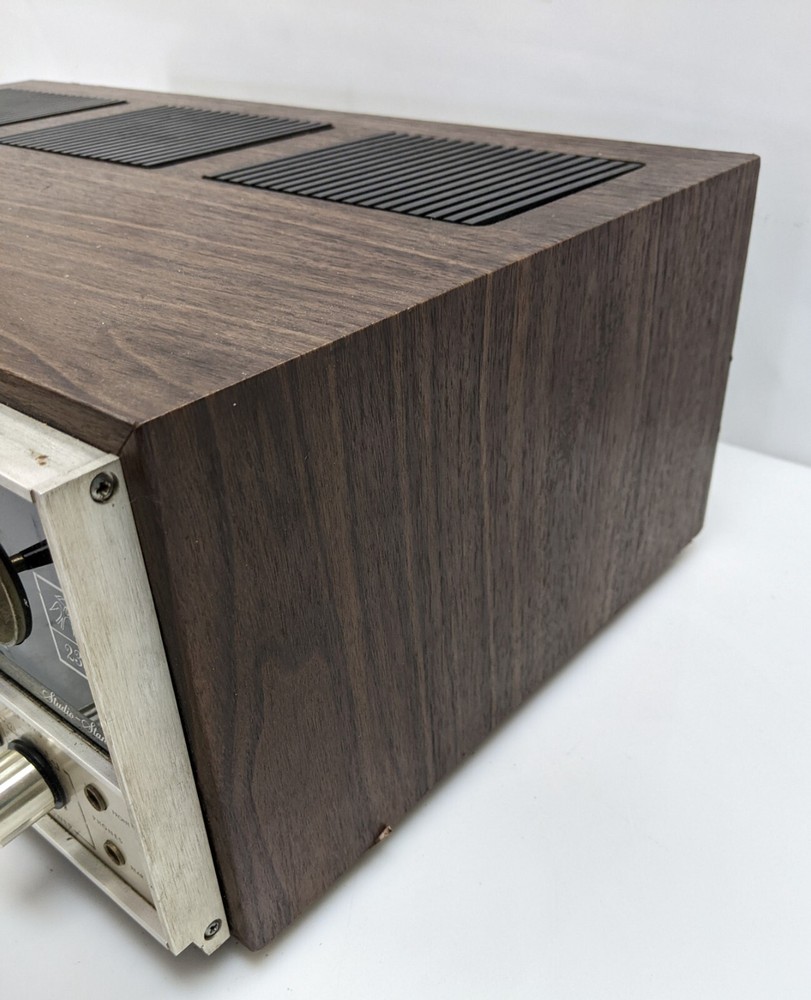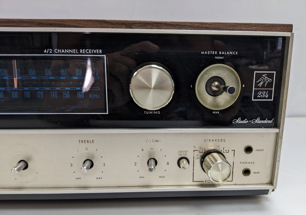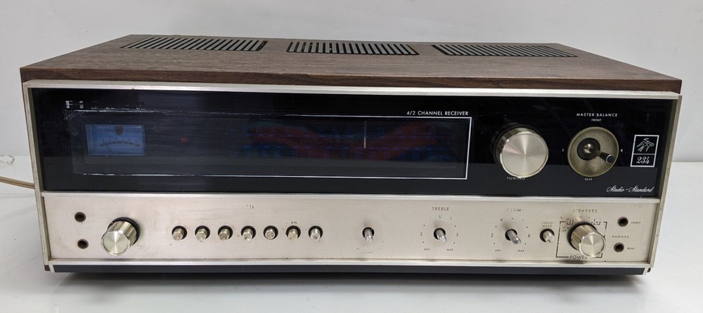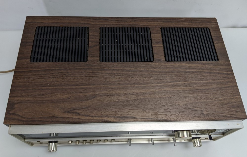 As shown. Faded lettering, missing knobs - Powers up but a brief test resulted in no sound. I did not spend but a couple minutes testing it, it could be an easy fix or maybe not. The wood cabinet is in good shape and apart from the faded lettering and missing knobs it's in overall good shape.