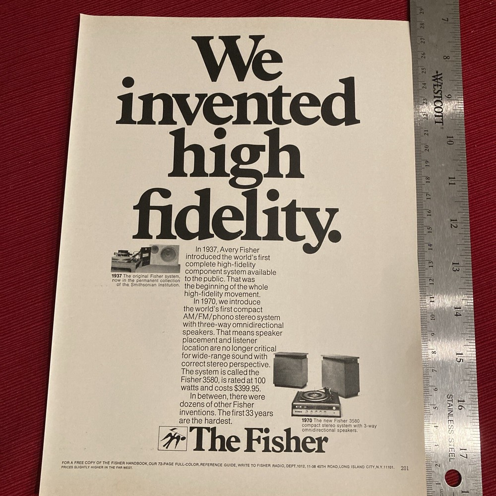 This vintage Fisher stereo ad is a fantastic piece of audio history! The print is in amazing condition, crisp and vibrant like it just came off the press. I love that it's an original ad—you can even see the authentic magazine texture. The backing board and protective sleeve keep it safe while making it easy to display. Perfect size for framing, and such a cool conversation starter for any music or retro tech lover. Definitely a unique collector's item that stands out!