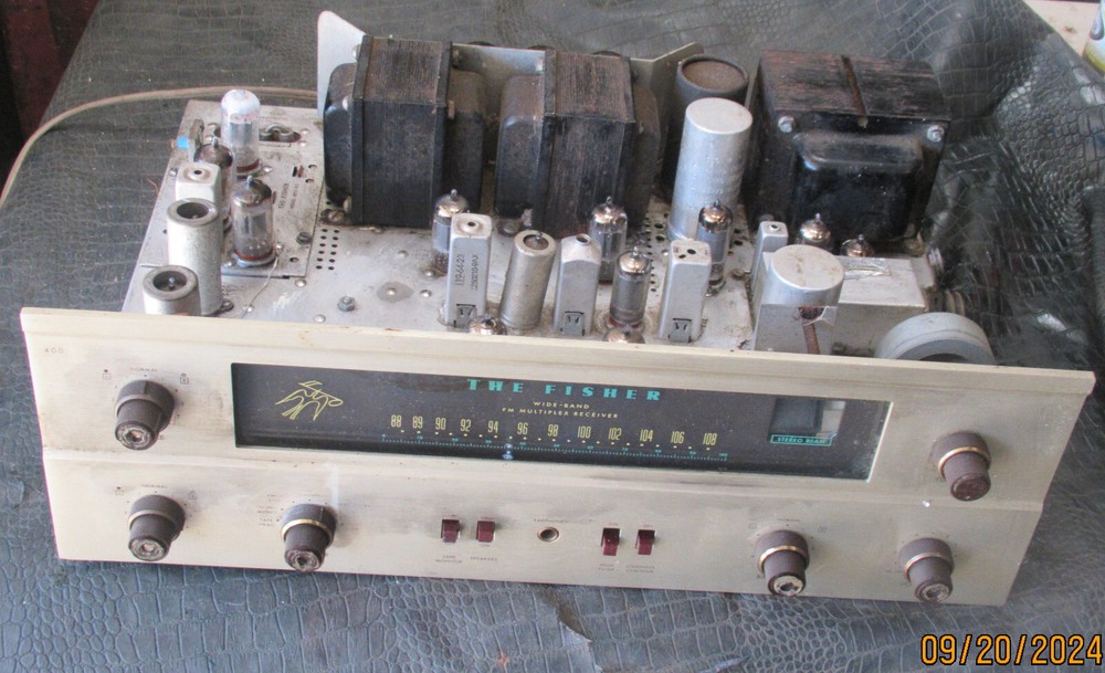<" alt="" class="gs-img"> <" alt="" class="gs-img"> " alt="" class="gs-img"> alt="product image" class="gs-img"> <" alt="" class="gs-img"> alt="" class="gs-img"> " alt="" class="gs-img"> alt="" class="gs-img"> " alt="product image" class="gs-img"> ESTATE SALE FIND ! Straight from a vintage audio collection REALLY NICE Fisher 400 FM Multiplex STEREO TUBE RECEIVER WITH GOLD FACE. RECEIVER IS COMPLETE LESS only 1 - 7868 TUBE. TUBE IS AVAILABLE NEW AND YOU CAN FIND THEM USED AND TESTED. IT WILL ALSO NEEDS A NEW STRING ON THE TUNER WHEEL. I HAVE NO WAY TO TEST THIS RECEIVER, WITH NO SPEAKERS . SOLD AS-IS. FROM THE WEB ABOUT THIS RECEIVER: the soft and warm sounding Fisher 400 RECIEVER, some claim, is one of the finest tube receivers ever made. There is a head phone jack at the center of the receiver and the famous Magic Eye tube which indicates the signal strength. ALSO SEE THE LAST PICTURE OF AN OUTSTANDING, WORKING FISHER 400 RECEIVER. . SOLD AS IS SEE MY OTHER ESTATE SALE AMP LISTING VERY NICE BOGEN AP-30 STEREO Amplifier Vintage McIntosh MC-75 Mono Tube Power Amplifier . _gsrx_vers_1151 (GS 8.0.11 (1151))