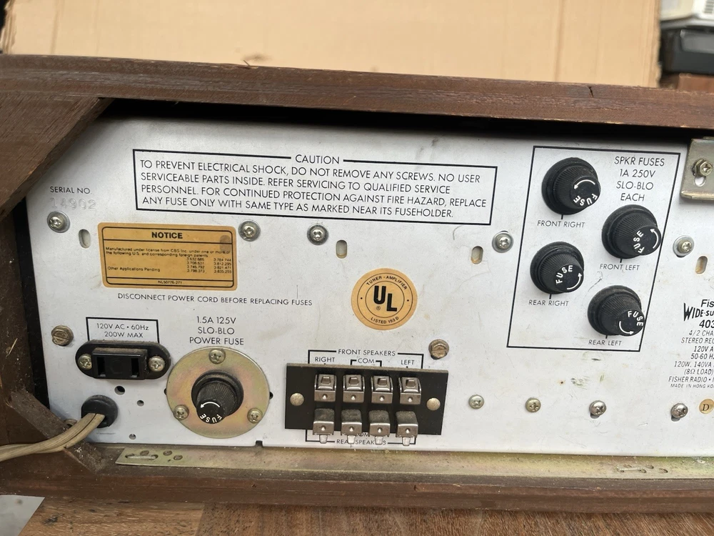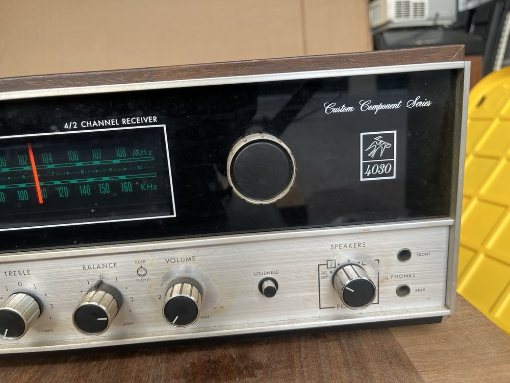 This unit powers on but I have not even bothered to test the outputs - you should consider this a repair project. The cabinet and faceplate are in surprisingly good shape and all original pieces appear to be present. If you need more photos or have questions just get ahold of me I’m available most hours most days Thanks