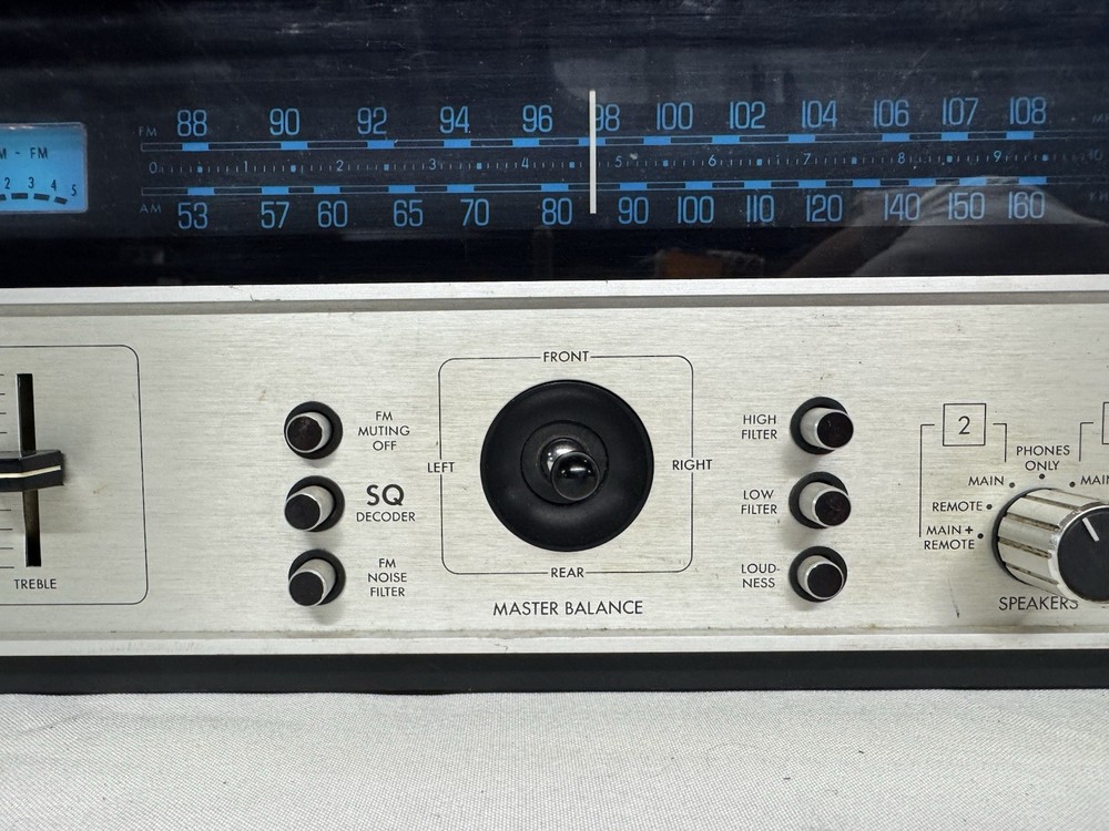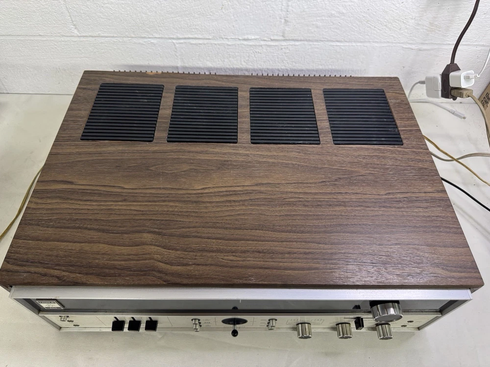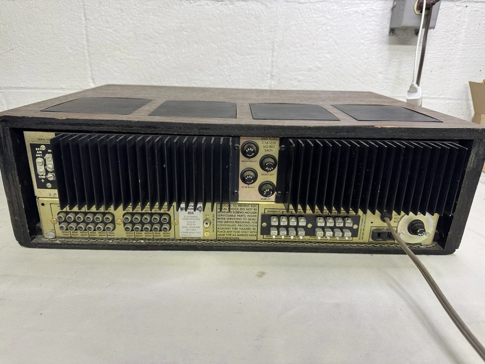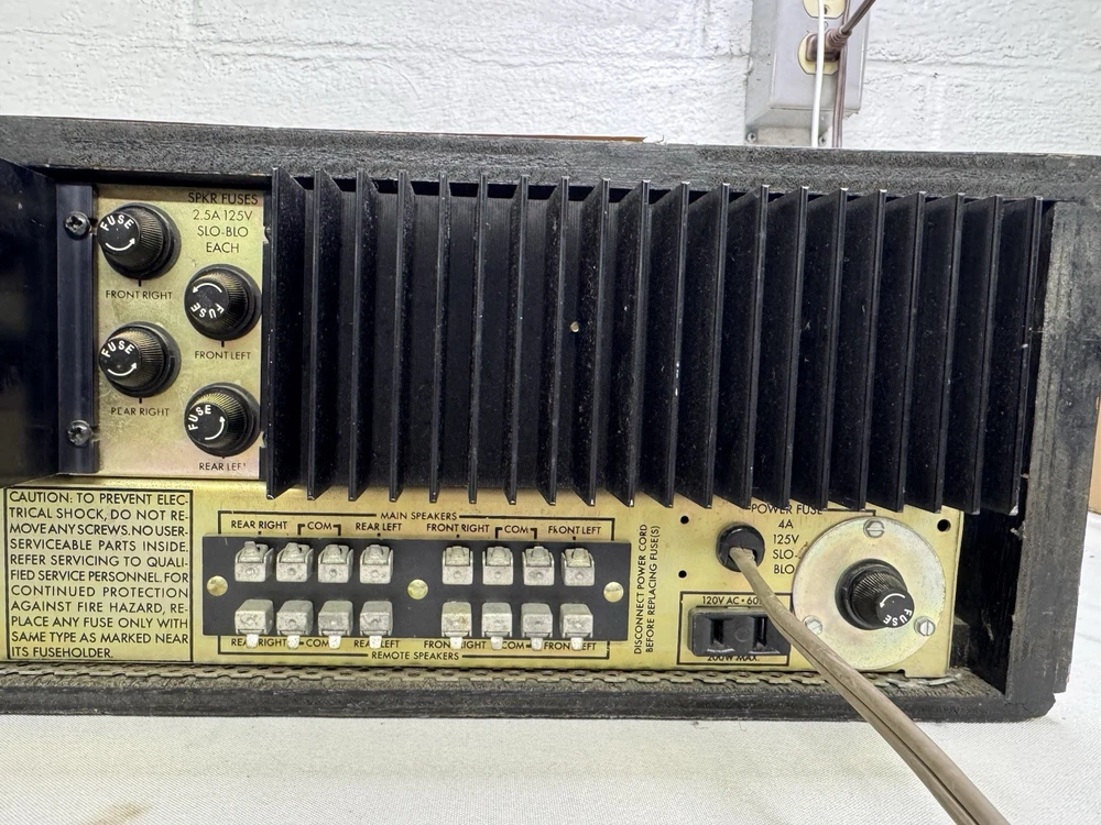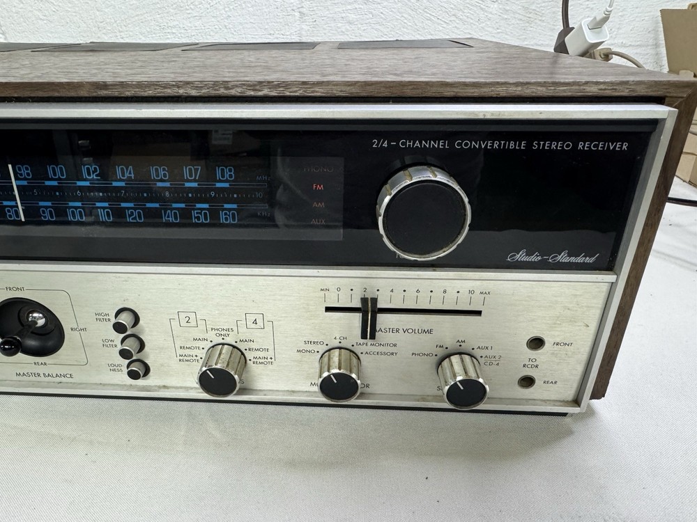Unit was made in Hong Kong in the good old days. The receiver does work along with all the lights. The wooden case shows some wear and tear but no major damage. There is some static in the volume slider but should be able to be easily resolved with some deoxit. Overall this is a decent vintage system and perfect if you’re looking for quad. It has a cool knob to adjust the sound. Unit is 21.5” x 16.5” This is a 50 year old piece of equipment. I plugged it in and checked both channels, ran the radio, and made sure all the knobs and controls worked. It sounded great aside from some static in the volume slider. I do my best to test each function and feel confident in what I’m selling, but please keep in mind this is not a brand new piece of equipment and it may have some quirks. I have been selling vintage audio gear online for a long time. This unit will be packaged up properly to minimize any risk of damage. Shipping will be via FedEx.