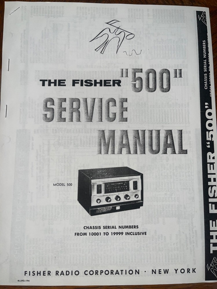 I am selling a Photocopy Fisher 500 Receiver Service Manual.. Item was used at a repair center .. Item will be shipped USPS First Class or Media Mail.....