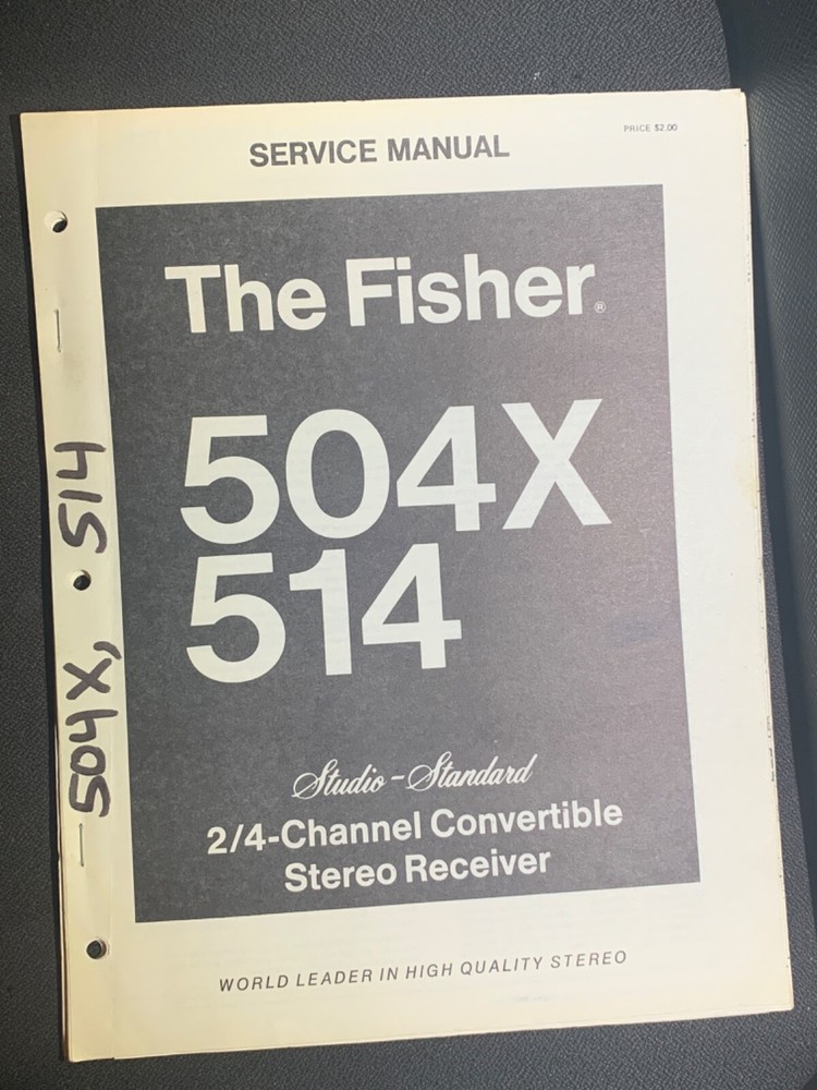 I am selling an Original Fisher 504X 514 Receiver Service Manual.. Item was used at a repair center .. Item will be shipped USPS First Class or Media Mail.....