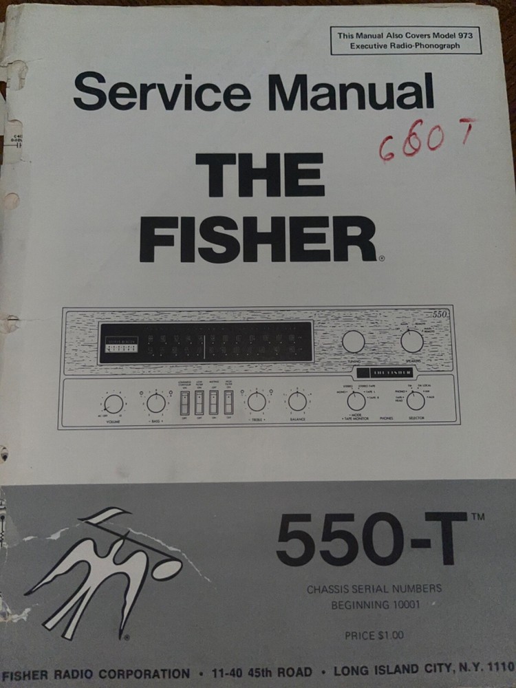 I am selling an Original Fisher 550-T AM-FM Stereo Receiver Service Manual ..... Item will be shipped Media Mail..