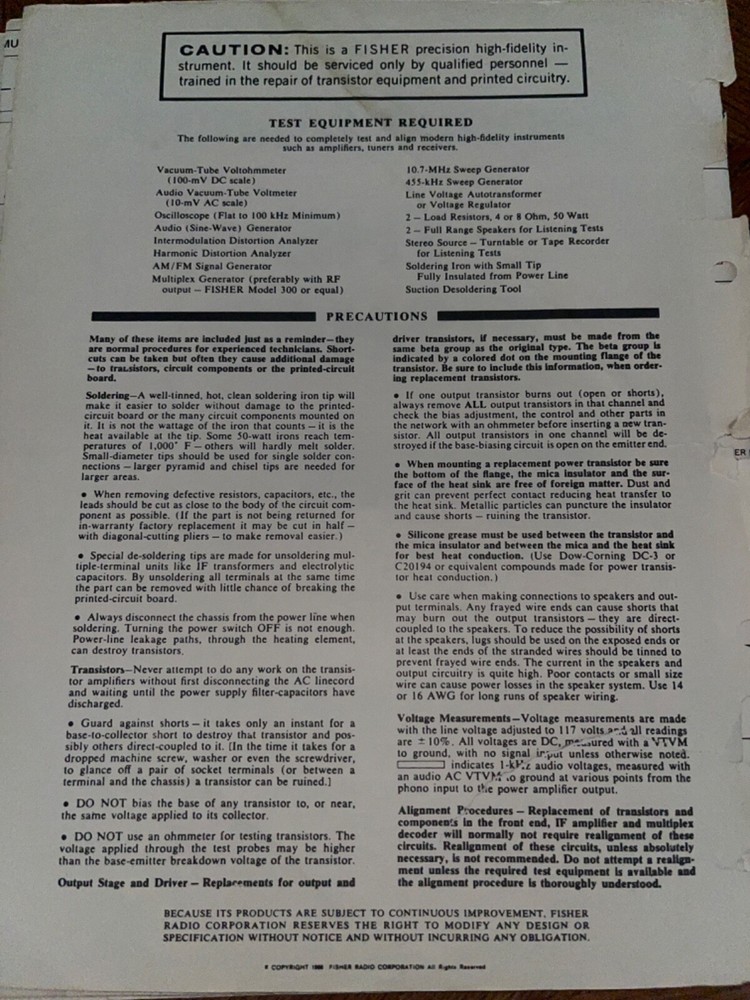 I am selling an Original Fisher 550-T AM-FM Stereo Receiver Service Manual ..... Item will be shipped Media Mail.....