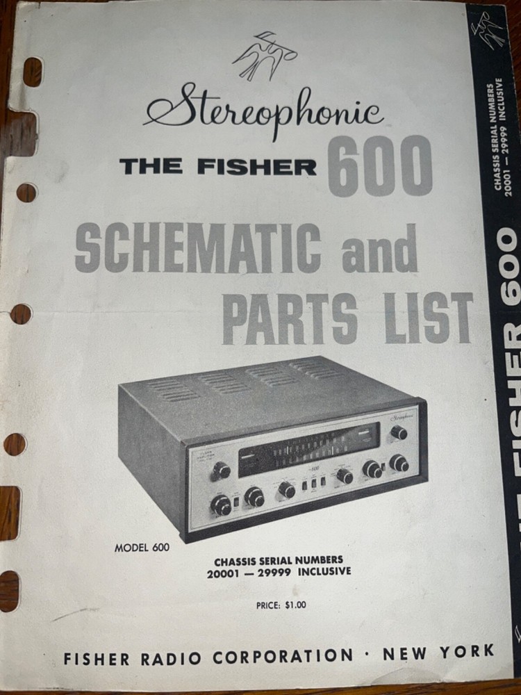 I am selling an Original Fisher 600 AM-FM Stereo Receiver Schematic and Parts List for Serials 20001 29999 ..... Item will be shipped Media Mail..