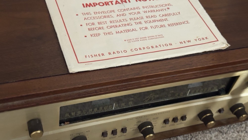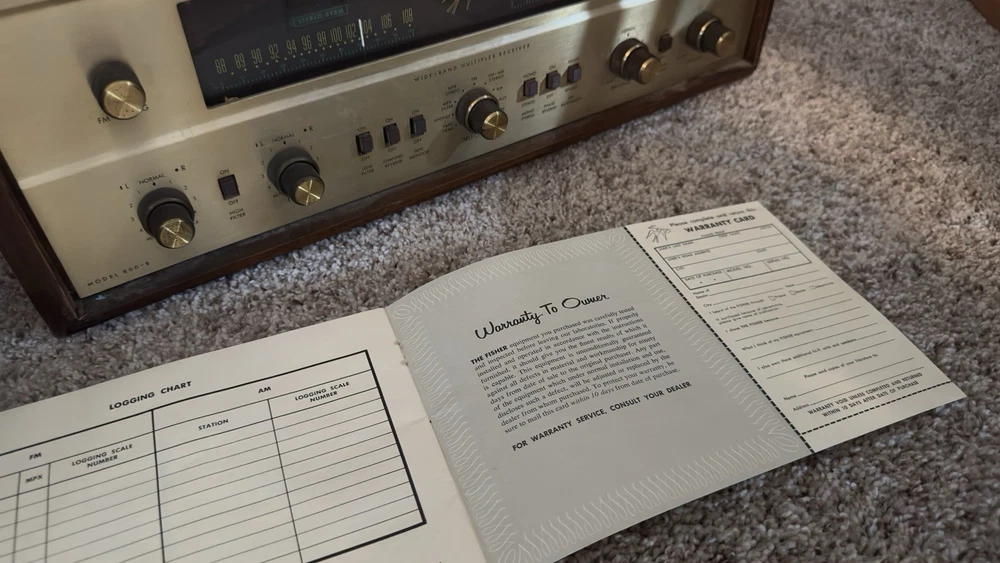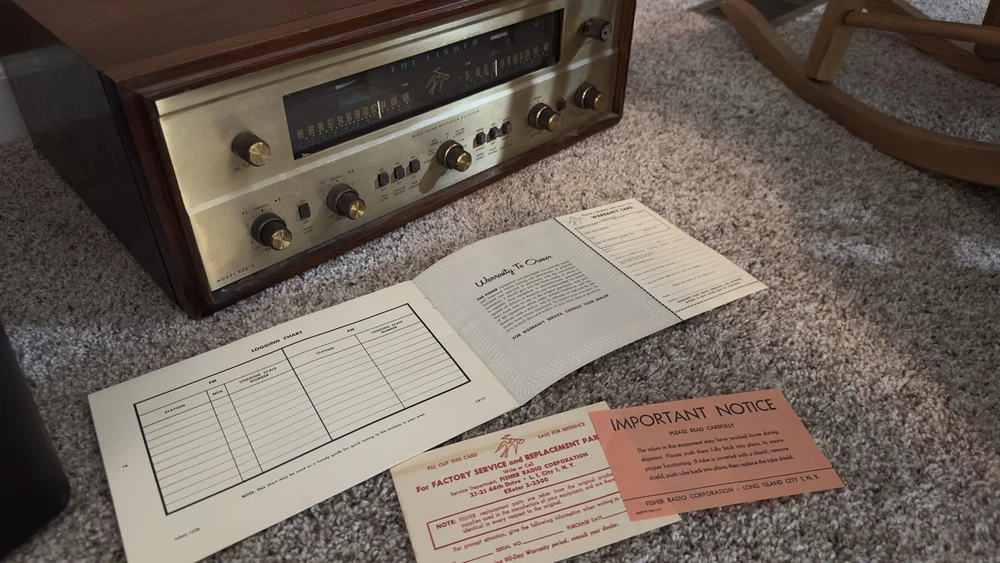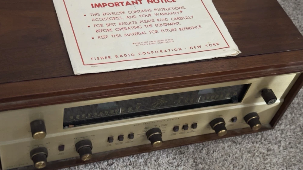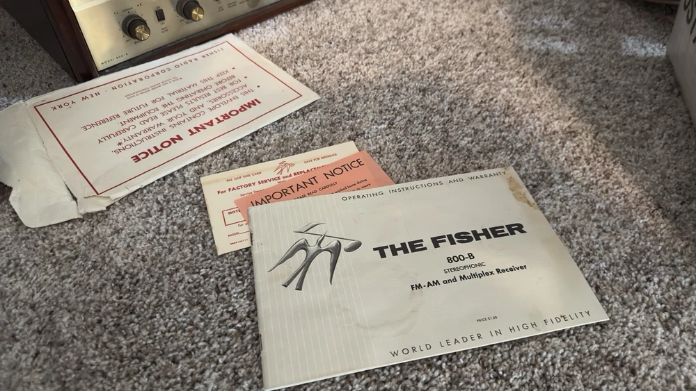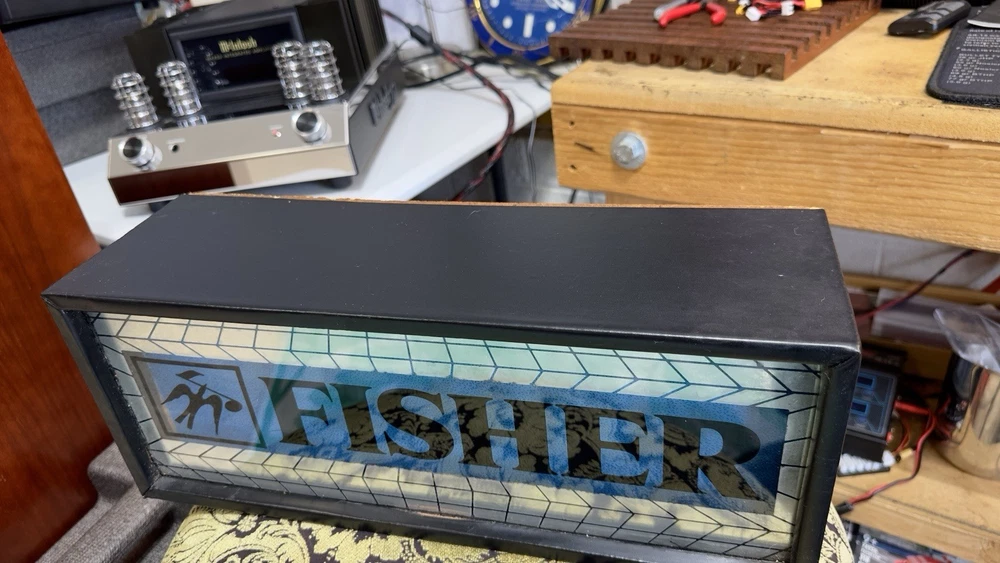 Better photos coming. The Fisher 800B AM/FM Receiver is a vintage tube amplifier that has been well-maintained by its original owner for 60 years. This amplifier is a great addition to any audio collection. With its brand name, Fisher, and model number 800B, this amplifier is a rare find for vintage audio enthusiasts. It is perfect for those who appreciate the sound of tube amplifiers and want to add a classic piece to their collection. Needs tlc of course Please ask any questions or any particular pictures you need. Thank you. This may have been one of the 1st multi plex stereo receivers made. I will include the vintage rare dealer lit sign great shape unknown condition probably needs a bulb. I am very hesitant to ship this time capsule but I will if insisted.