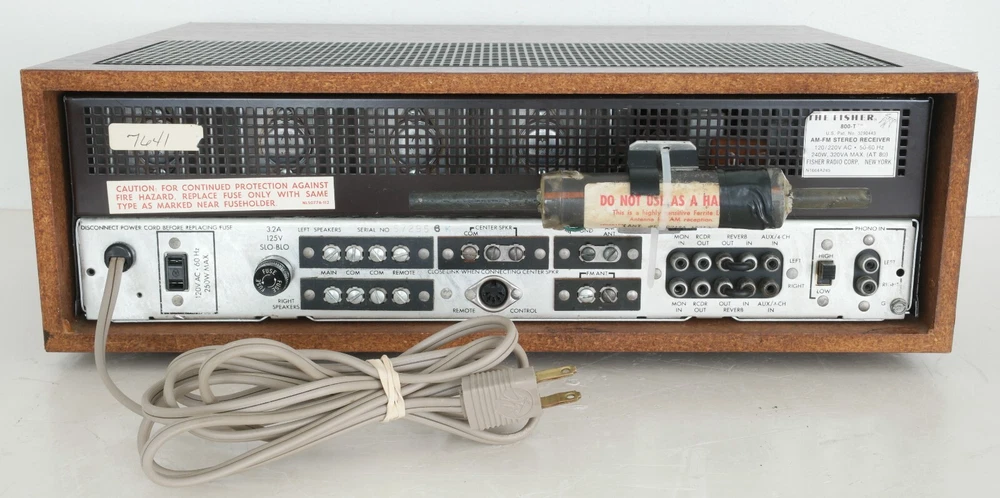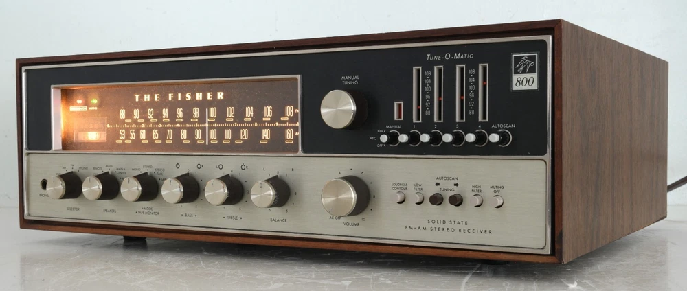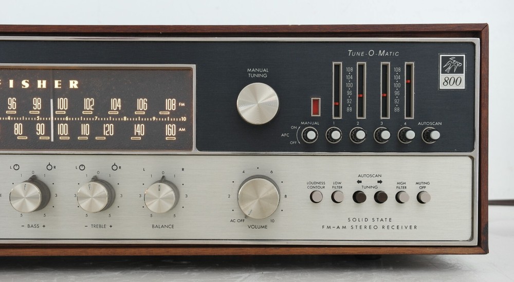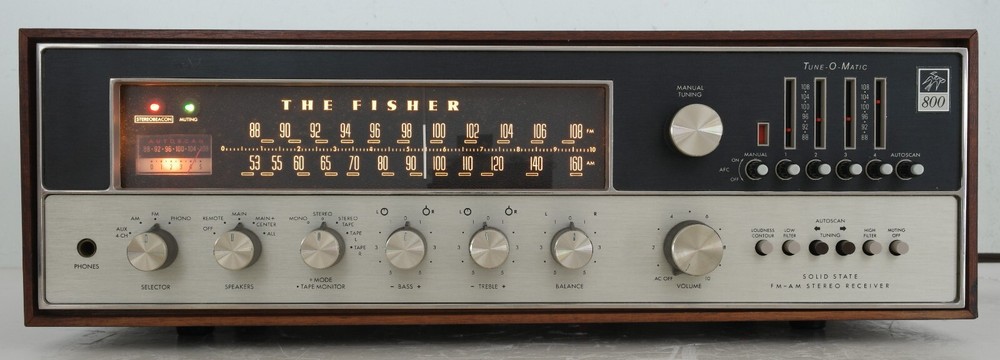 Fisher 800-T AM/FM Stereo Receiver with Original Wood Cabinet Up for sale is a Fisher 800-T AM/ FM Stereo Receiver with Original Wood Cabinet. As the photos show, this is in good condition for its age. The RH volume produces a bit of sound at the lowest end, but this is not a problem in use. Part of the plastic bracket supporting the AM antenna is damaged. It is fixed with a cable tie so there is no problem in use. Please look at all the pictures for an over all condition, before bidding. All items are offered for sale locally therefore listings may end without notice ( CraigsList ). What you see is exactly what you get. Please see the photos for condition details and judge for yourself. All items are sold in the condition shown in photos and "as is" condition, with no warranties. If you have any questions please email me. No returns please! Shipping to Continental United States Only (48 States). Thank You for looking, and good luck with your bids!!!