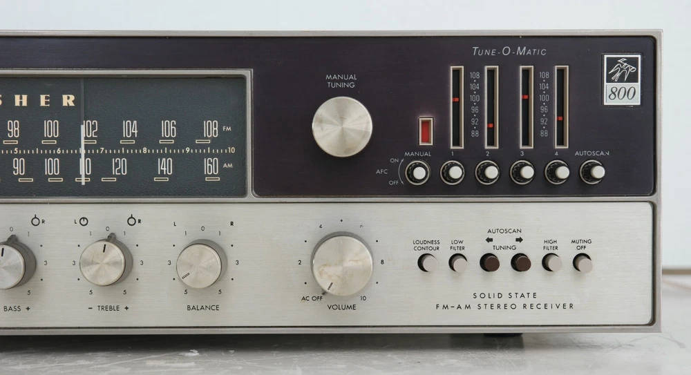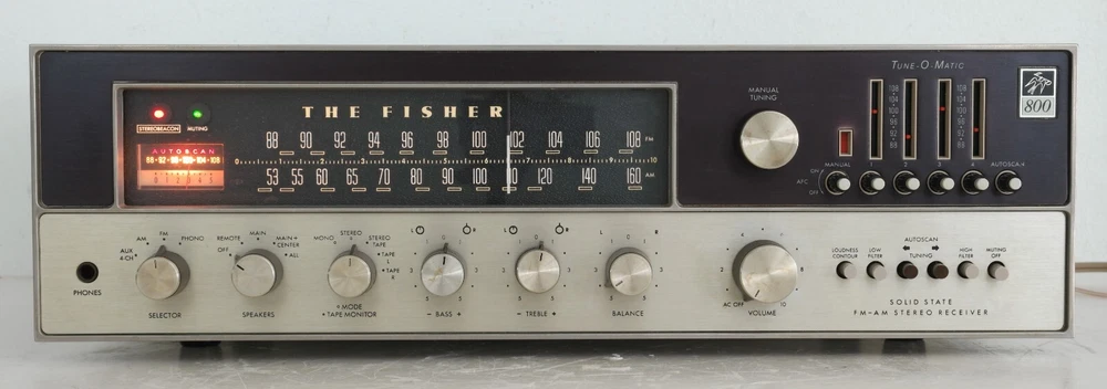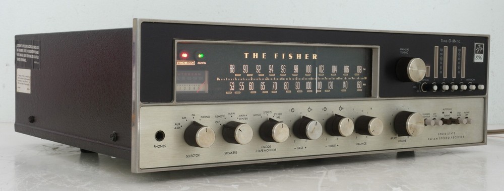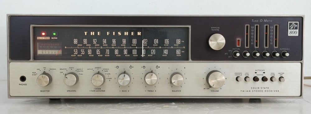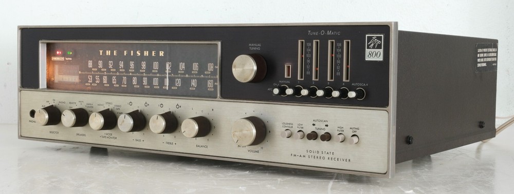 Fisher 800-T AM/FM Stereo Receiver Up for sale is a Fisher 800-T AM/ FM Stereo Receiver. As the photos show, this is in fair to good condition for its age. The power transistors in the receiver were replaced with new ones. The main fuse holder was malfunctioning, so I replaced it with a new one. I removed the pig fuses inside the receiver and installed fuse holders to easily replace the fuse. The receiver is working fine, but the receiver has the following problems. 1. When FM tune-o-matic and auto scan are in operation, the overall frequency seems to be biased downward. But reception is good. When performing manual tuning, the frequency matches well. 2. When receiving AM, the sound is low. 3. When the balance knob is rotated to the left, a slight scratching sound is heard. Therefore, it is sold on an "AS-IS" condition. Please look at all the pictures for an over all condition, before bidding. All items are offered for sale locally therefore listings may end without notice ( CraigsList ). What you see is exactly what you get. Please see the photos for condition details and judge for yourself. All items are sold in the condition shown in photos and "as is" condition, with no warranties. If you have any questions please email me. No returns please! Shipping to Continental United States Only (48 States). Thank You for looking, and good luck with your bids!!!