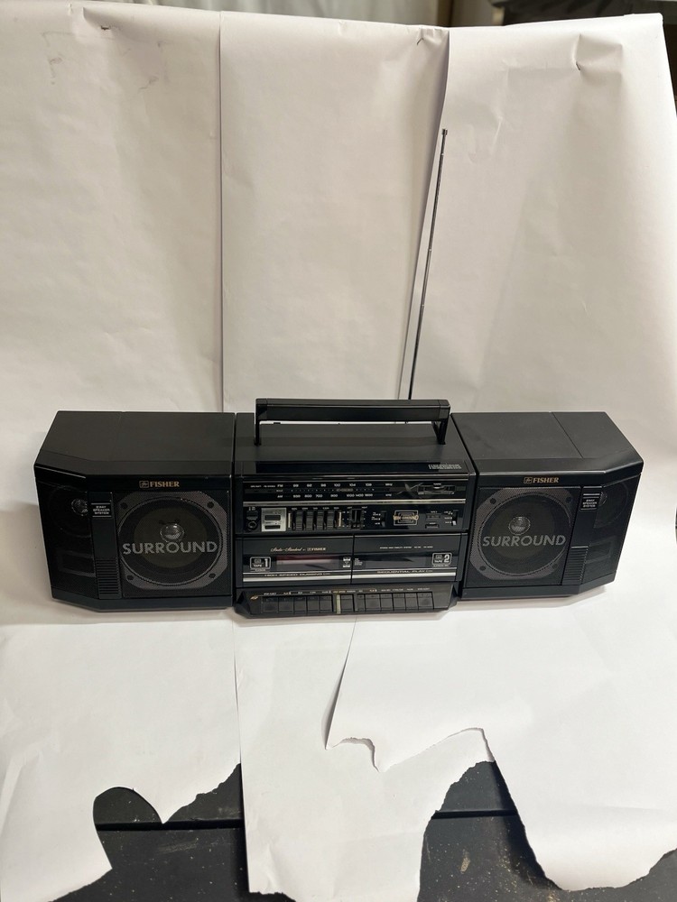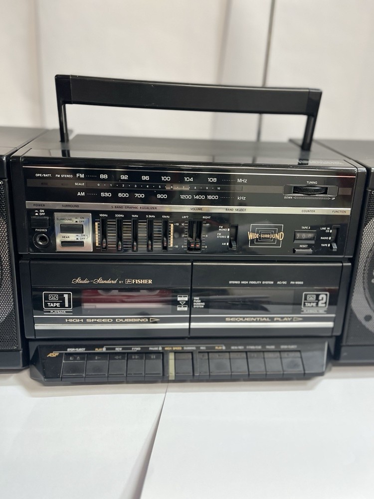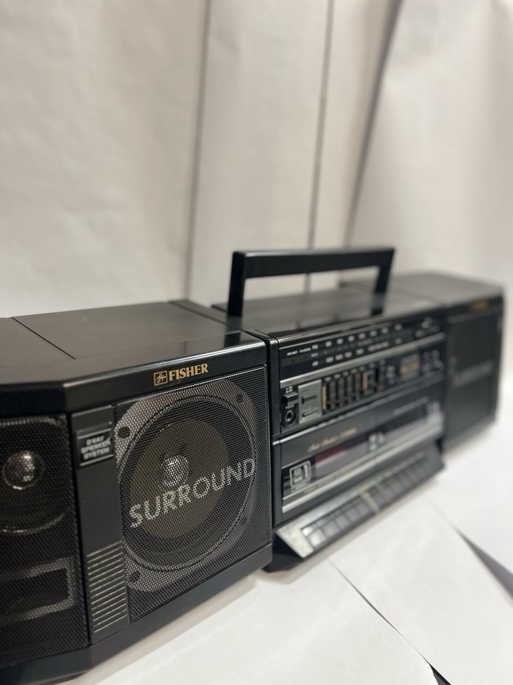 The Fisher 80's Boom Box Model PHW-803BA is a classic black boombox that offers a variety of playback and audio options. With a focus on cassette tapes, this model features AM/FM radio capabilities and 3-way surround sound for an immersive listening experience. The boombox is equipped with a headphone jack and stereo RCA outputs, allowing for versatile audio connectivity. The high-speed dubbing feature ensures quick and efficient cassette tape duplication, making it a convenient and stylish addition to any retro audio setup. Do you remember waiting, with your finger on the button to record your favorite song as soon as the DJ stopped talking? This box allows you to listen to a cassette tape on the left and record or copy a tape in the right side. You can pull your favorite cassettes out of the attic and relive the good times again.