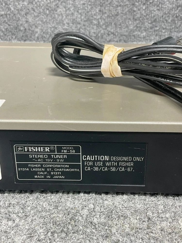 Fisher AM/FM Stereo Synthesizer Tuner FM-58 Compact Studio Standard AC 19V 9W Description Fisher AM/FM Stereo Synthesizer Tuner FM-58 Compact Studio Standard AC 19V 9W Product Detail • Brand : Studio Standard by Fisher • Model : FM-58 • Type : Stereo Synthesizer Tuner • Weight : 3 lbs • Condition : This item is pre-owned and shows signs of wear and tear consistent with regular use. Any noticeable imperfections, such as scratches, scuffs, or minor dislocations, are detailed in the description or visible in the photos. Please review all images and information carefully before purchasing. • Important Note : The item has some scratches due to its used condition (please see images 4, 5, and 6 carefully). Please note that the stereo synthesizer tuner does not come with any other accessories . This item has been tested and will be tested again before shipping to confirm it is in the same condition as listed. PLEASE NOTE: This item does not come with any accessories unless they are specifically mentioned in the listing description. It only comes with what is pictured. Please review the pictures before making a purchase. We value your business and encourage you to send a message if you have any issues or concerns I answer most questions instantly! Thank you! Customer satisfaction is our top priority. All products undergo quality checks to ensure they are in good condition when shipped to our customers. If a product is defective or damaged upon arrival, or if the wrong product is shipped, please understand that this is not intentional, as we have to pay for the shipping and the return. Please contact us immediately. “Returns are accepted within 30 days of the delivery date, and the item must be in its original new condition, with attached tags and wrap, and should not be worn or altered in any way. Otherwise, the sale is considered final. We cover all shipping costs for returns. Please contact us first if you have any problems, questions, or concerns.” We will be happy to resolve any issues you may have in a courteous and friendly manner. We appreciate your positive feedback and will do the same in return. Please do not leave negative feedback without first communicating with us. Please allow a maximum of 2 business days for us to respond.