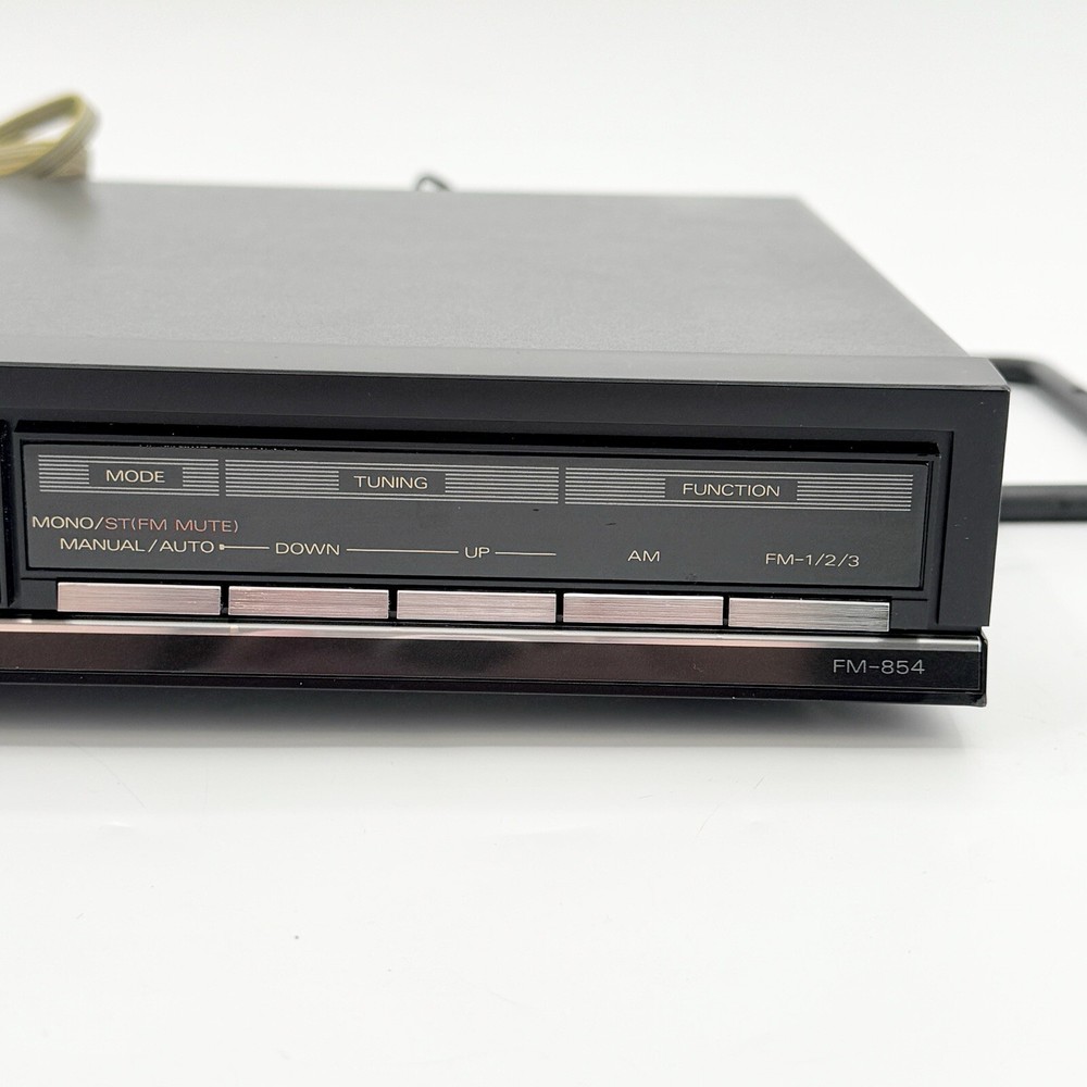 For sale is a Fisher FM-854 Stereo Tuner, a vintage AM/FM digital synthesizer tuner made in Japan. This unit features a slimline design with a digital display, preset buttons, and manual tuning functions. The built-in antenna and RCA outputs make it easy to integrate with existing audio systems. Features: Digital Synthesizer Tuner – Classic AM/FM reception with a digital tuning display. Multiple Presets – Save and quickly access your favorite stations. Slimline Design – Compact and lightweight, ideal for vintage or modern setups. Built-in Antenna & RCA Outputs – Ready to connect to your stereo system. What’s Included: Fisher FM-854 Stereo Tuner Attached power cord Built-in AM/FM antenna This item is fully functional but has visible signs of wear. Please review all photos for condition details. Ships securely with proper packaging to ensure safe delivery. Feel free to ask any questions before purchasing. Item is USED and condition may vary. Item has been fully tested and cleaned to the best of our ability unless otherwise noted. Item may have minor cosmetic imperfections (scratches, scrapes, normal wear and tear, etc.) from normal daily use or small amounts of residue or dust. Please read the description in bold above and view photos carefully. Item is guaranteed to be as described and any known flaws or issues specific to this item are noted. Item may or may not NOT include all accessories necessary to function (ac adapters, chargers, batteries, cables, memory cards, etc.) Please reach out to us directly with any questions or concerns, we're happy to help! We provide free 30-day returns and ship within 3 business days via USPS Ground Advantage, USPS Priority Mail, OR UPS Ground depending on the item in question and your location. If you prefer any specific shipping service, please reach out to us directly and let us know. Thanks for looking! We hope you have a wonderful day! ~Willy