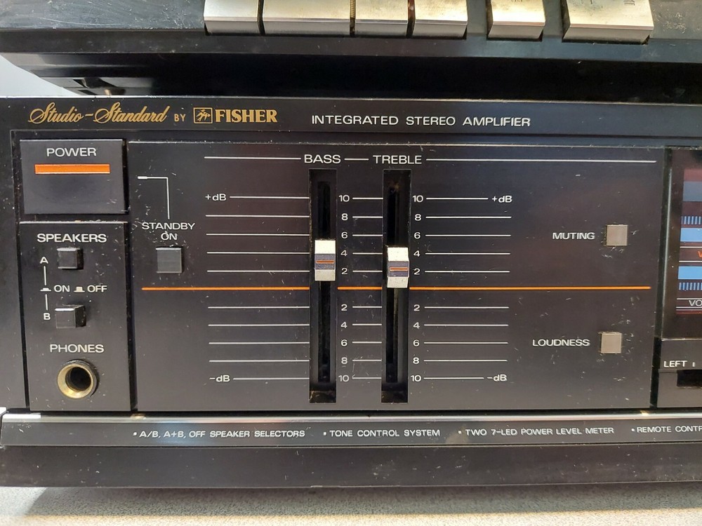 Fisher Audio System - CA-W75H Amp, CR-W75H Tape, FM-271A Tuner; Free Shipping! Hello, stereo fans! Today we have a three-piece audio component stereo. While we have this listed as for PARTS or REPAIR, two of the three components are working just fine. The CA-W75H Integrated Stereo Amplifier IS WORKING. This amp has two odd, proprietary power outlets in the back, which accept the integral power cords from the other two components. The FM-271A AM/FM Stereo Synthesized Tuner IS WORKING as well. The CR-W75H Stereo Double Cassette Deck is where the "PARTS or REPAIR" part of this listing comes in. It does power on, but neither of the two cassette decks work. It is also missing part of the left side cassette door (this is mainly cosmetic damage, as you can still insert a cassette and close the door). In addition, there is a good deal of cosmetic damage to the finish on the top of this component. Please see photos for physical and cosmetic condition. Shipping will be via either USPS Priority Mail, Federal Express, or USPS; whichever of the three proves most cost-efficient. Please note that as we are listing this as for PARTS or REPAIR, we are selling this AS-IS with No Returns. Thank you for looking!